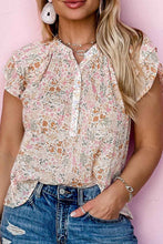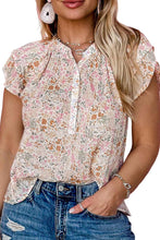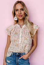 - The silhouette is both flattering and comfortable featuring an elegant mandarin collar, half button-front detail, and short ruffle sleeves for a girly touch
