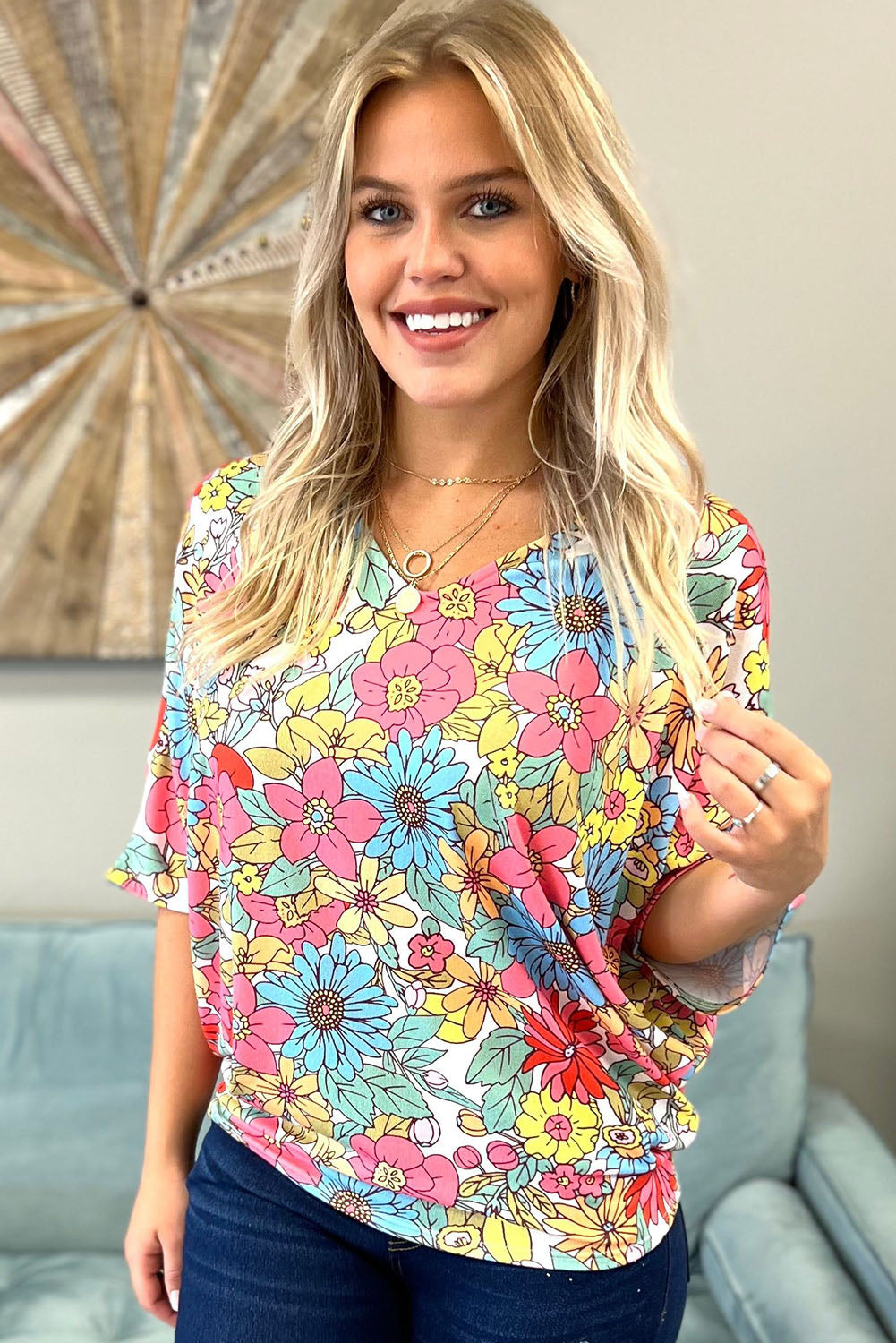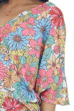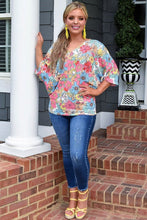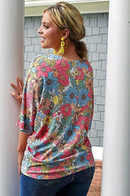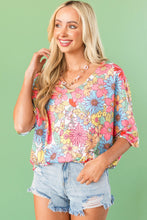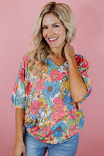 Multicolor Floral Print V Neck Half Sleeve Blouse