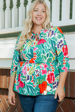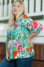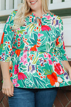 Multicolor Floral Tie Split Neck Plus Size Peplum Blouse