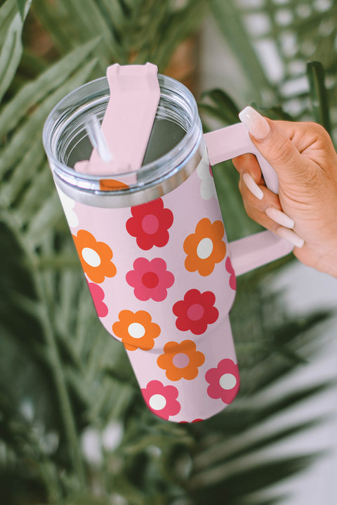 Multicolor Flower Print Handled Stainless Steel Vacuum Cup