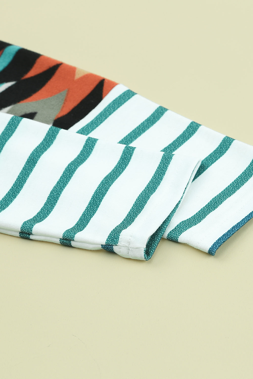 Multicolor Geometric Color Block Open Front Long Cardigan