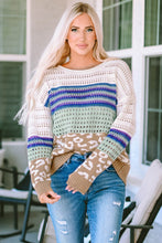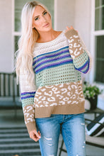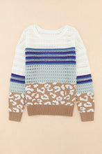 Multicolor Leopard Striped Mix Pattern Knit Crochet Sweater