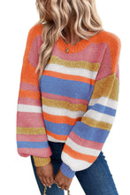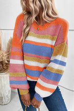 Multicolor Striped Knit Drop Shoulder Puff Sleeve Sweater
