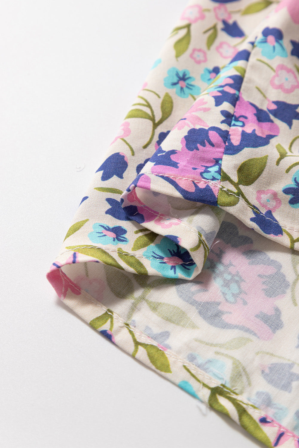 Multicolour Bohemian Floral V Neck Loose Half Sleeve Blouse