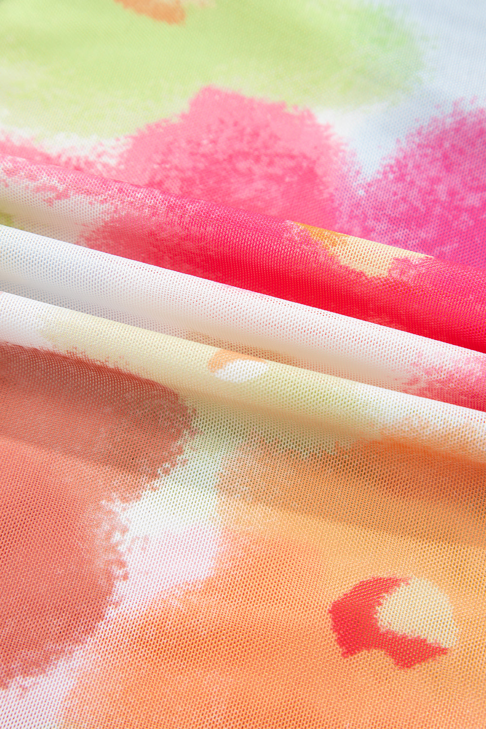Multicolour Floral Mesh Lettuce Trim Cropped T Shirt