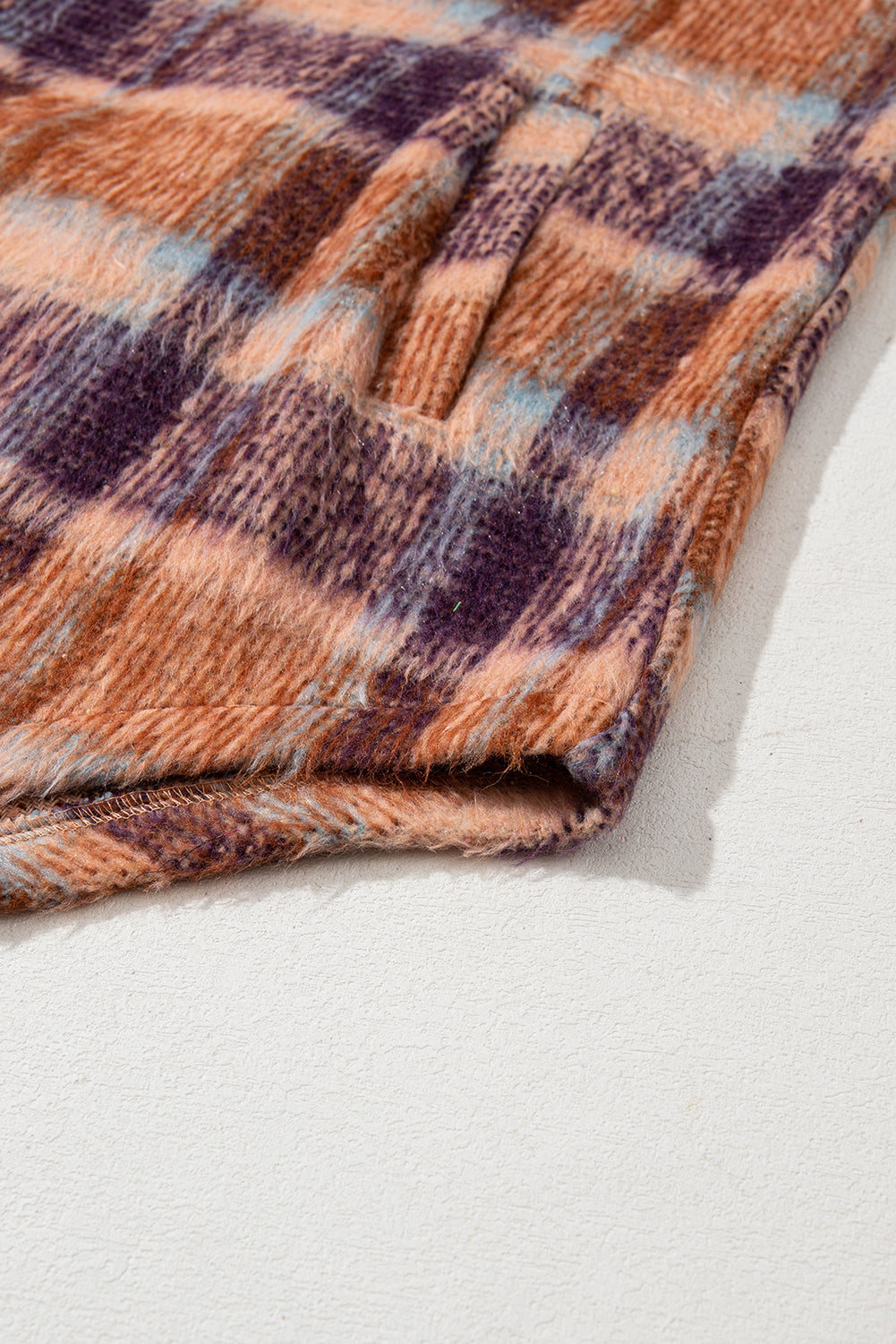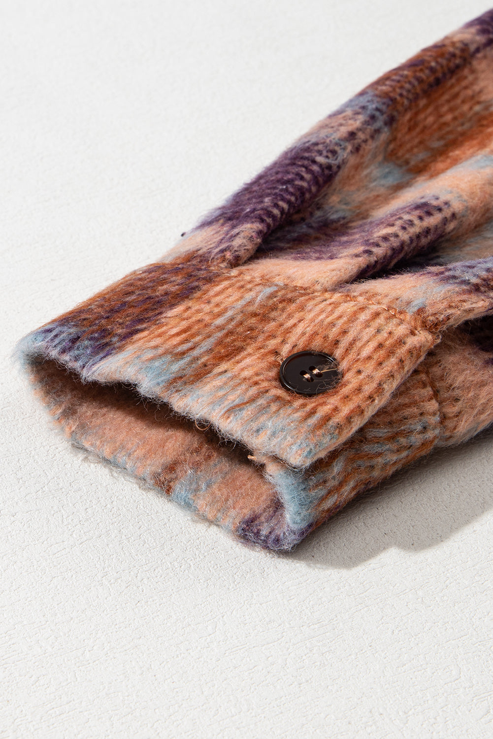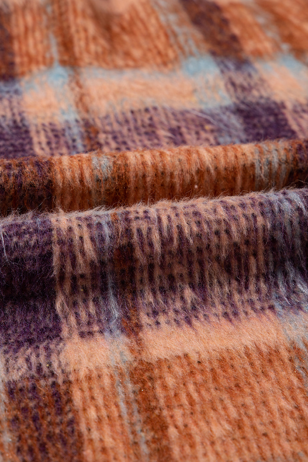 Multicolour Plus Size Plaid Print Collared Button up Jacket
