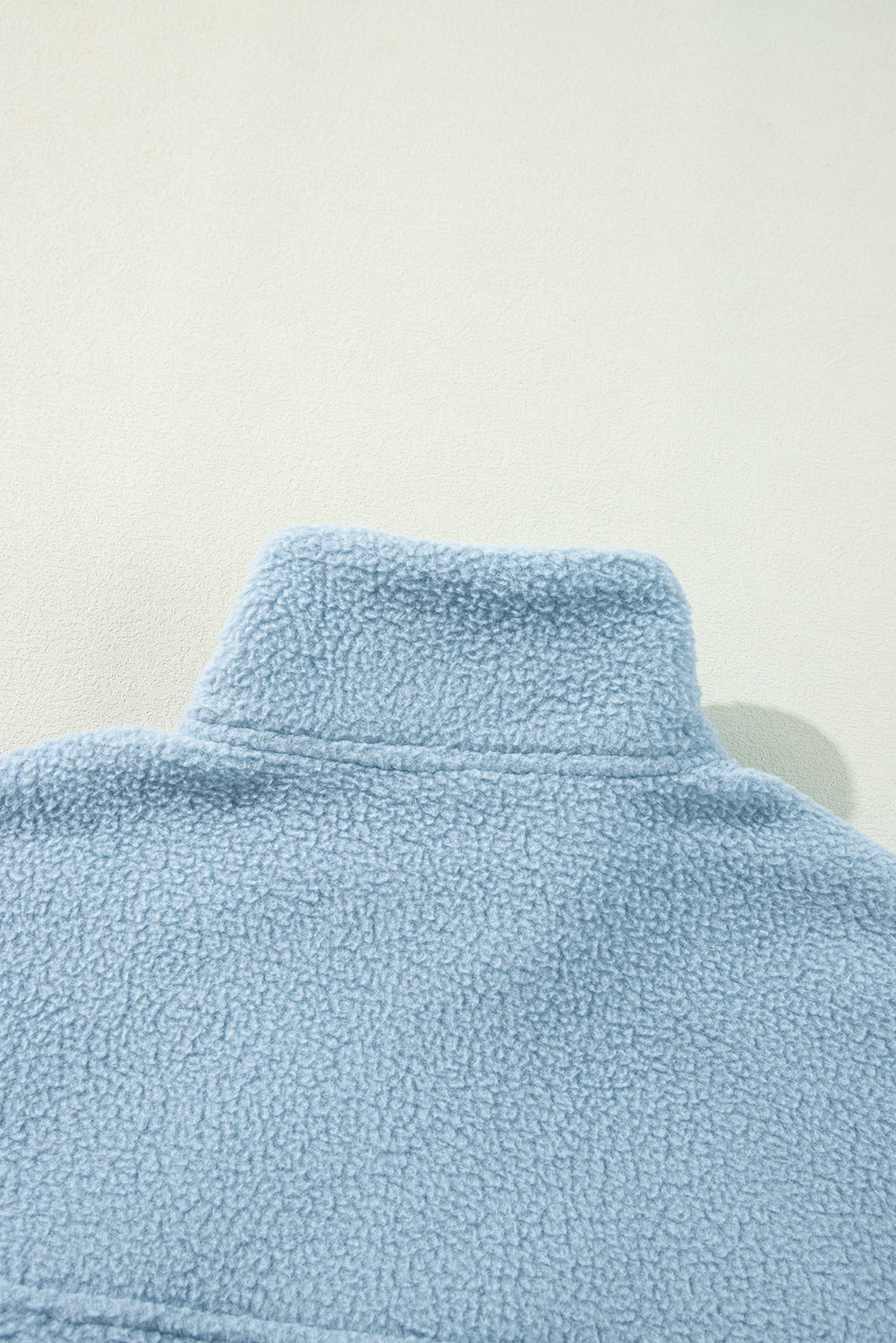 Myosotis Collared Zipper Drop Shoulder Fleece Sweatshirt