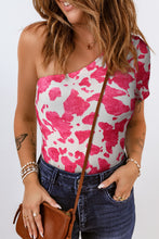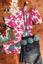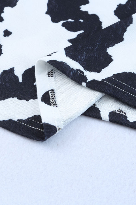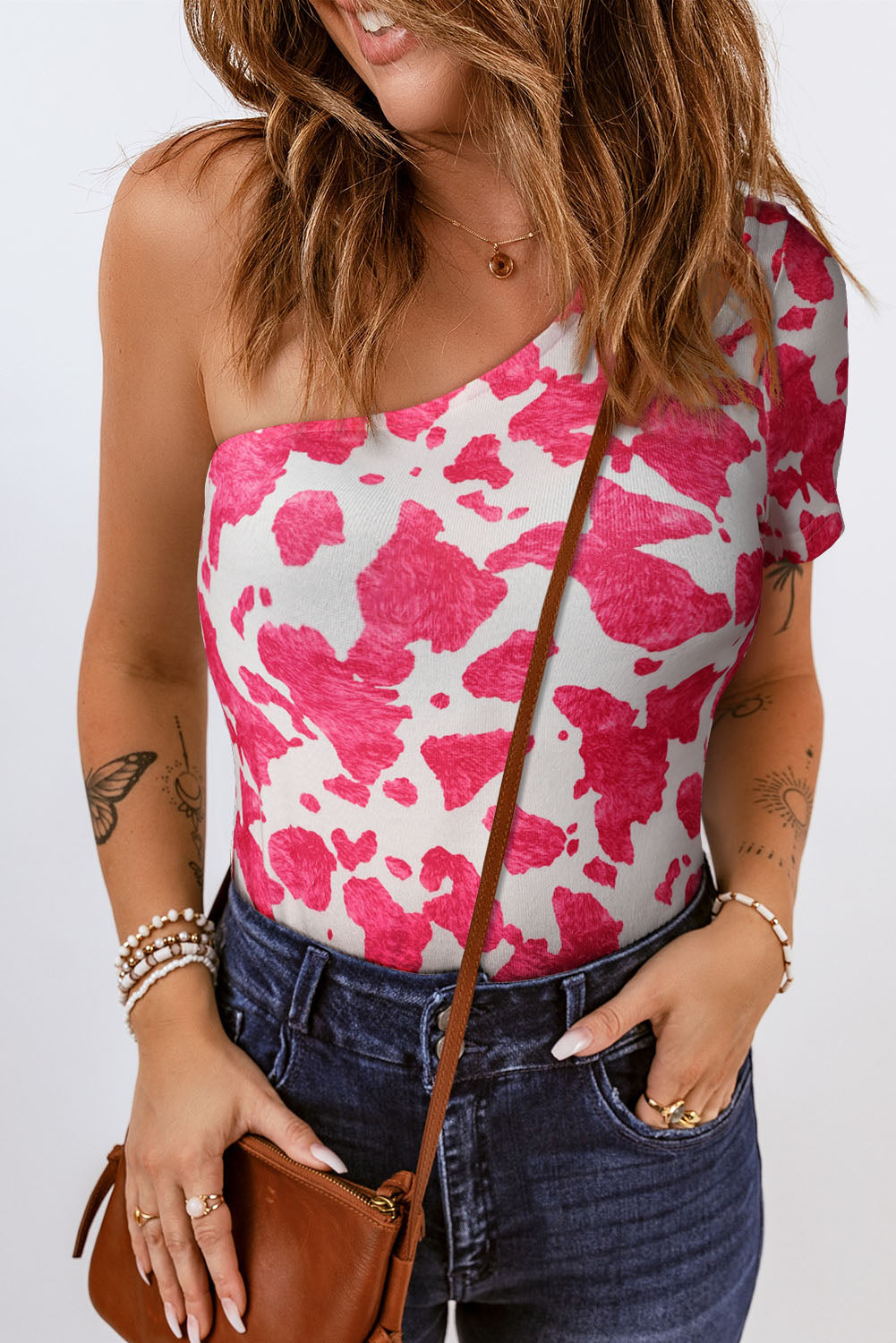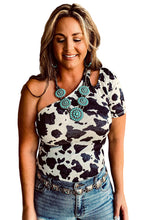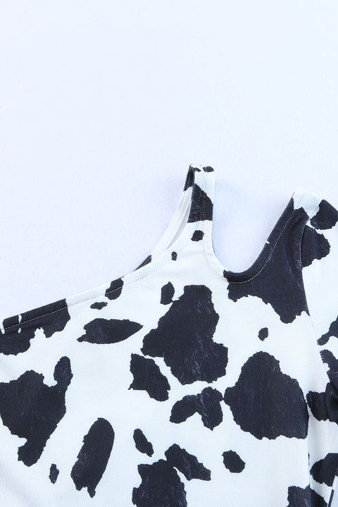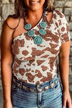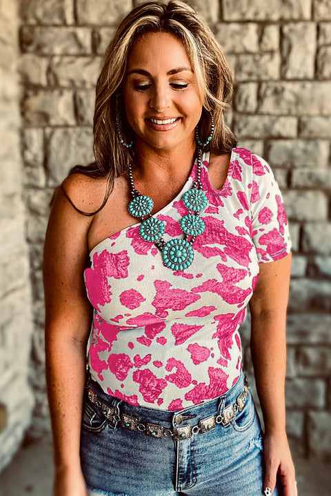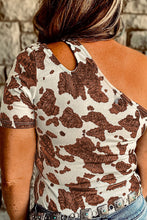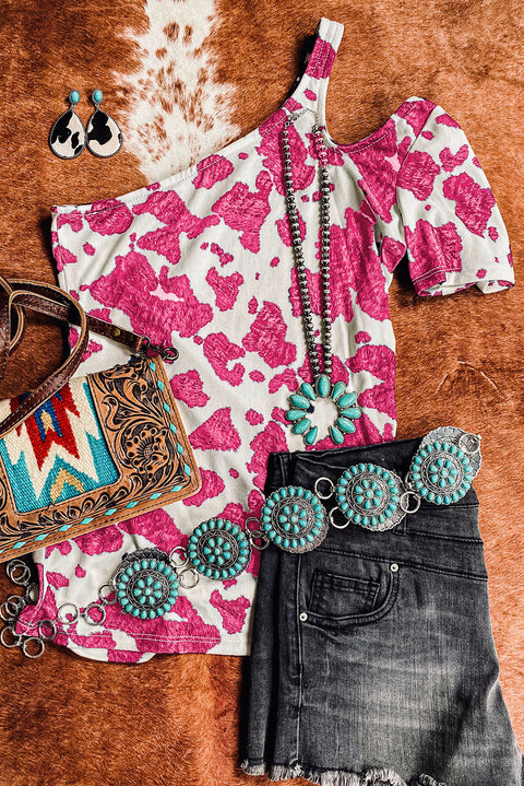 One Shoulder Cow Print Cut out Short Sleeve Top