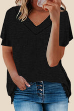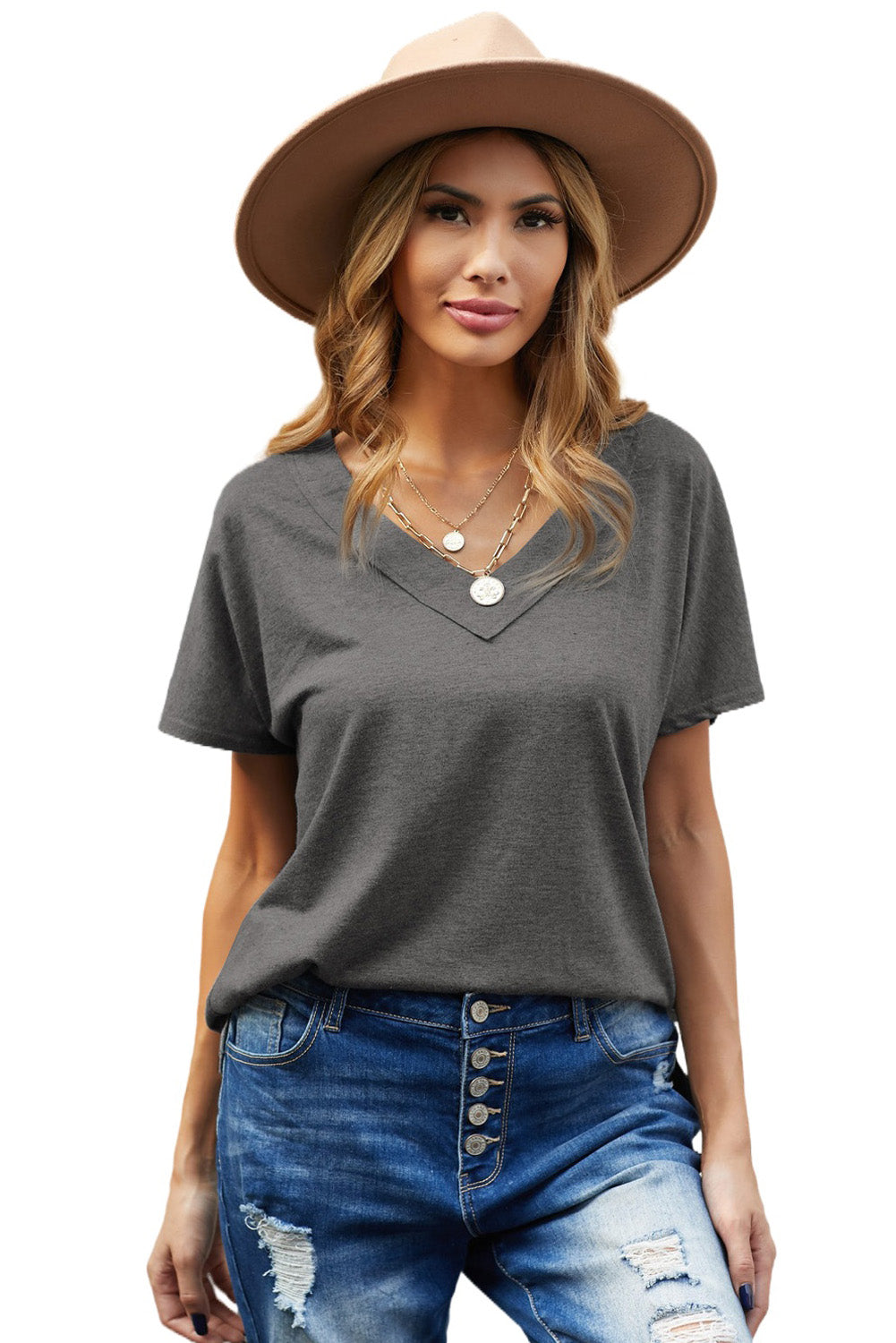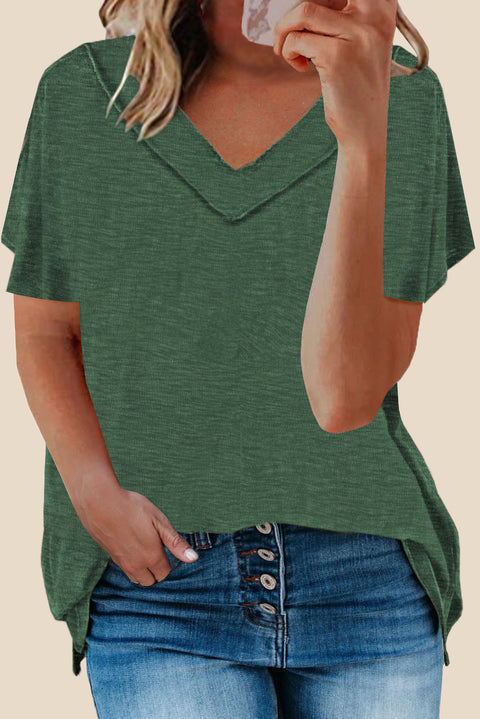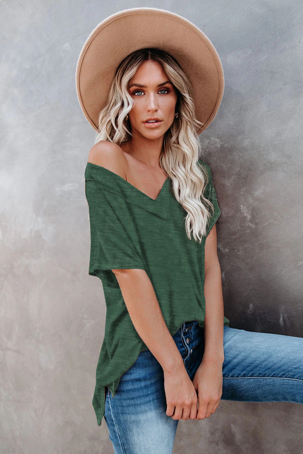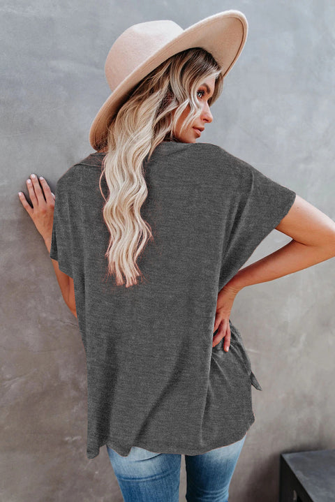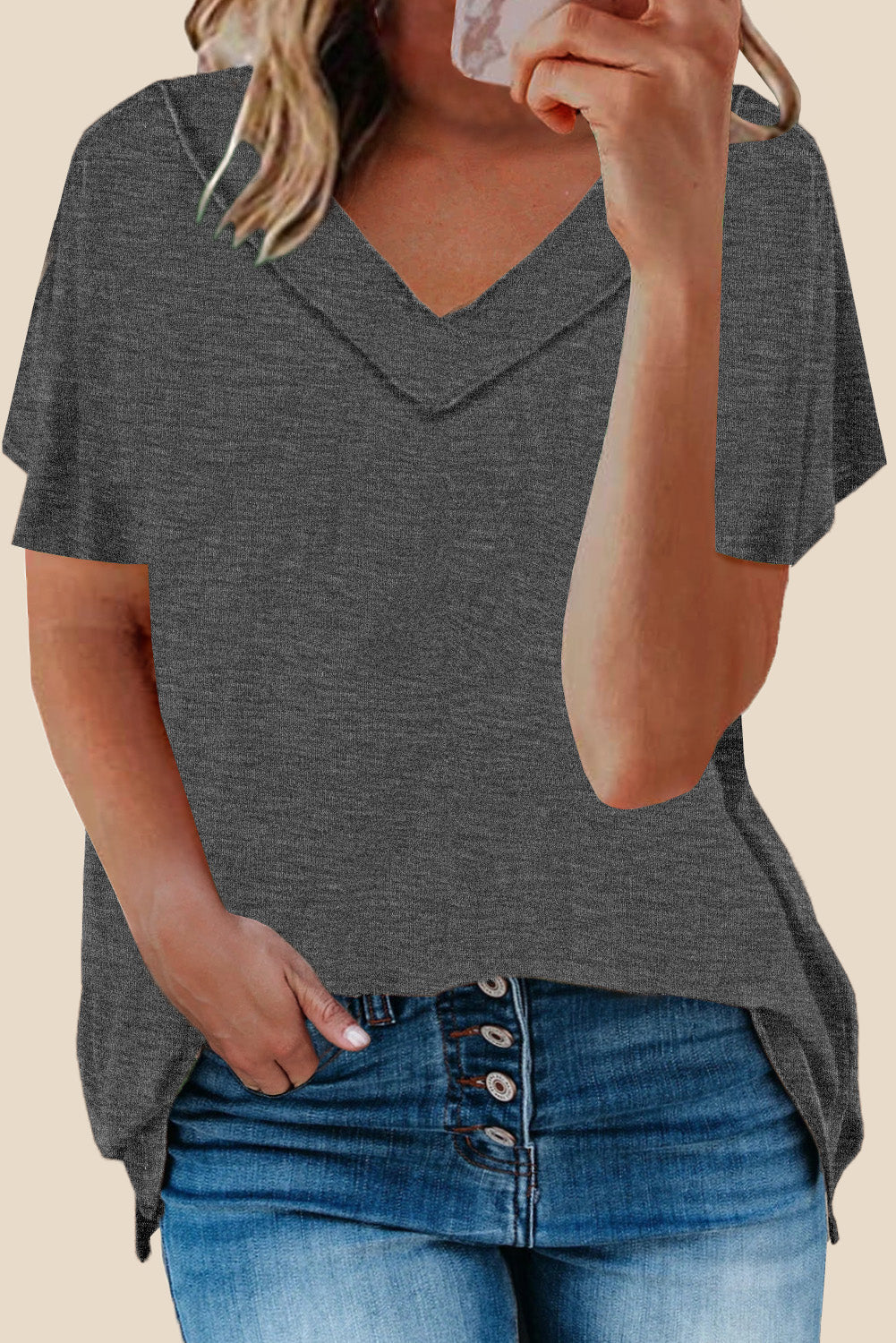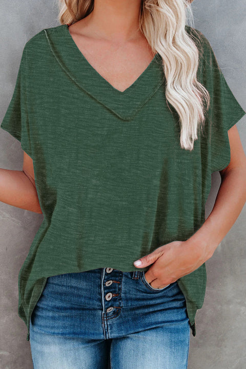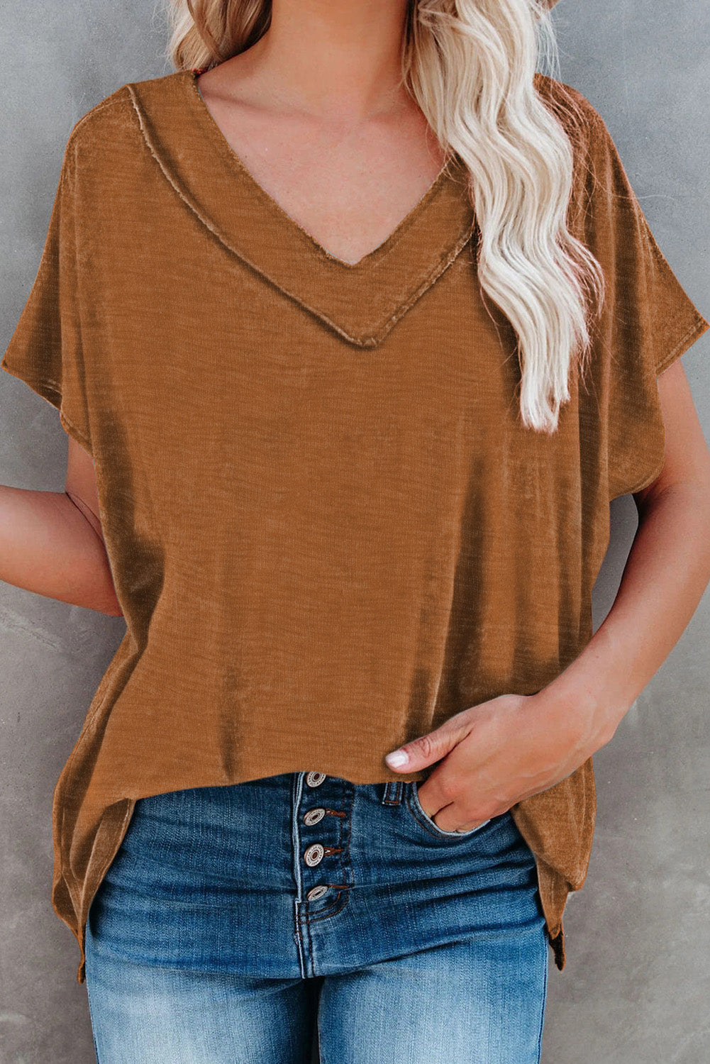 Oversized Mineral Wash Cotton Blend V Neck Short Sleeves Top