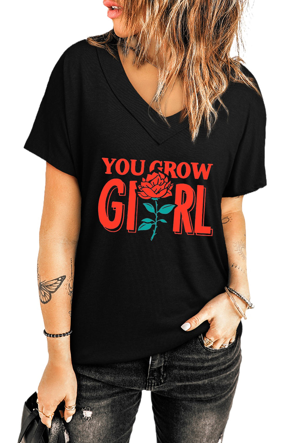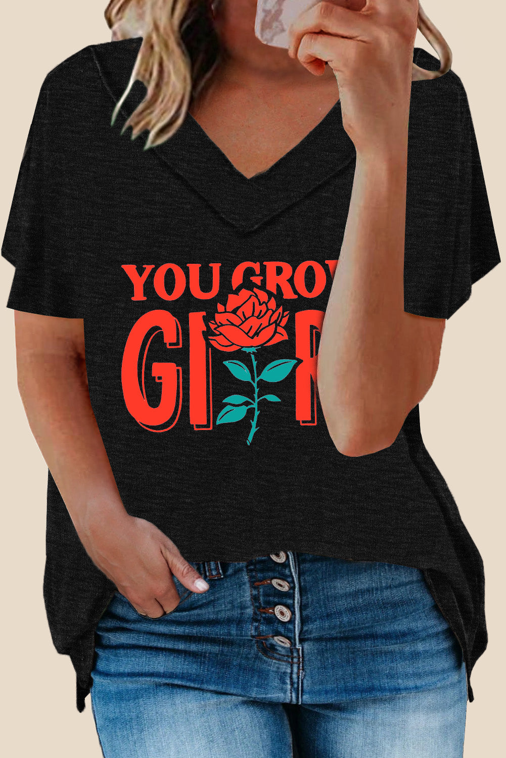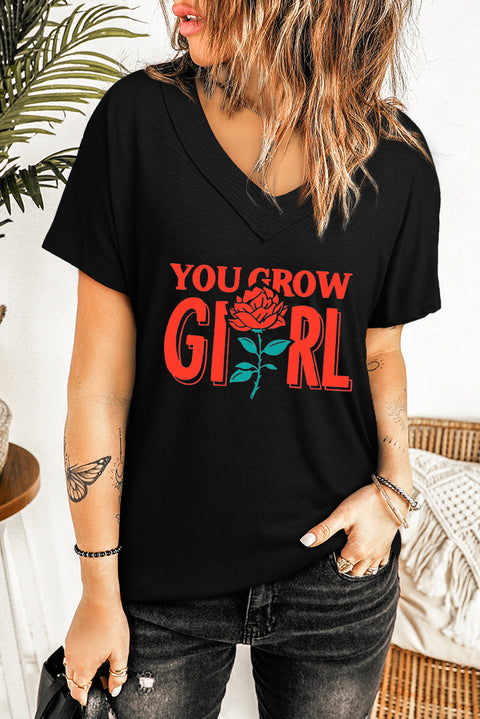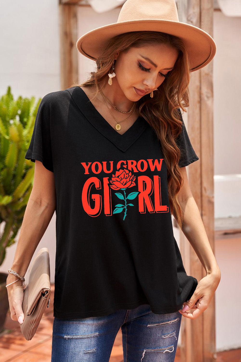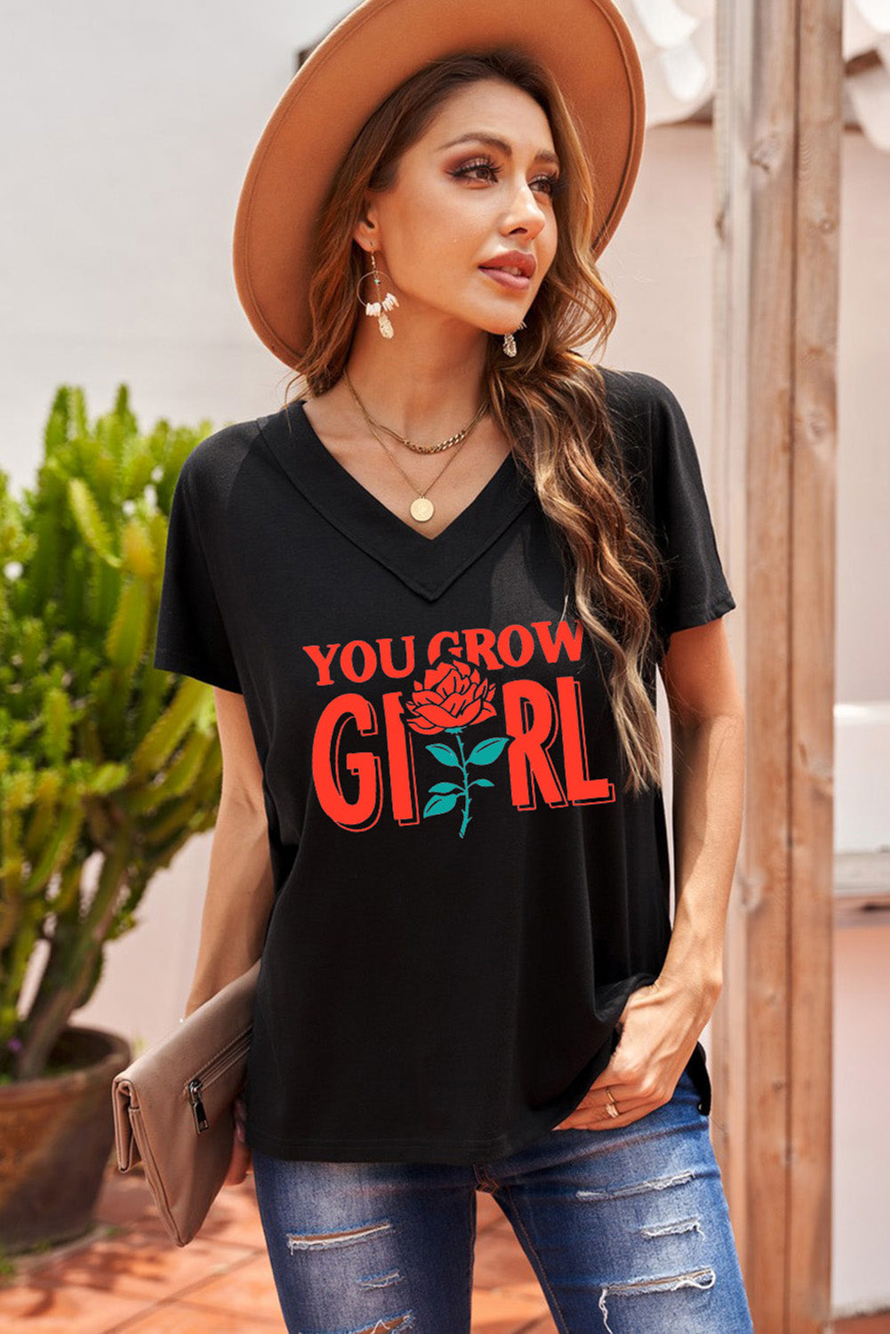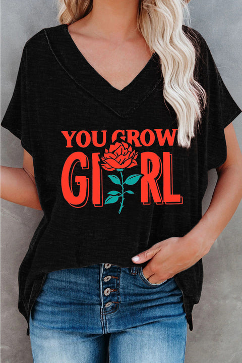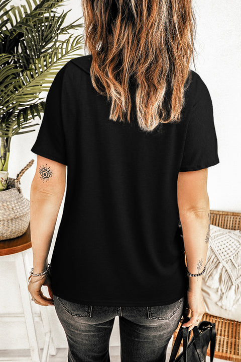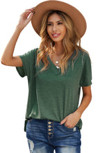 Oversized Mineral Wash Cotton Blend V Neck Short Sleeves Top