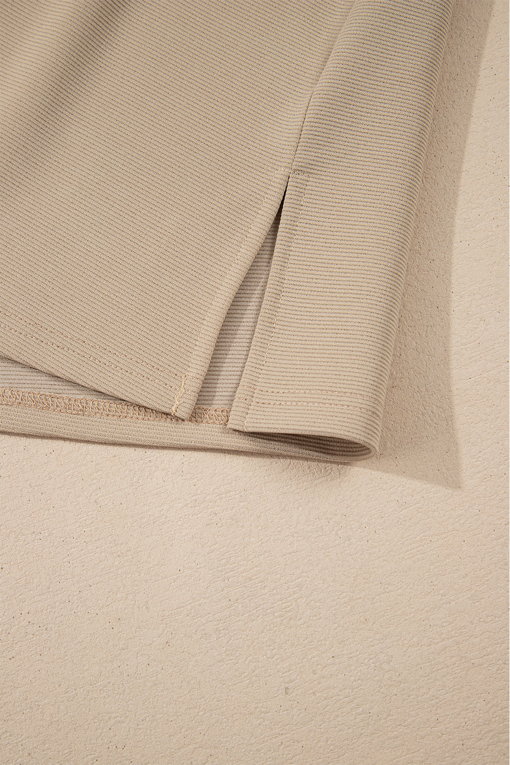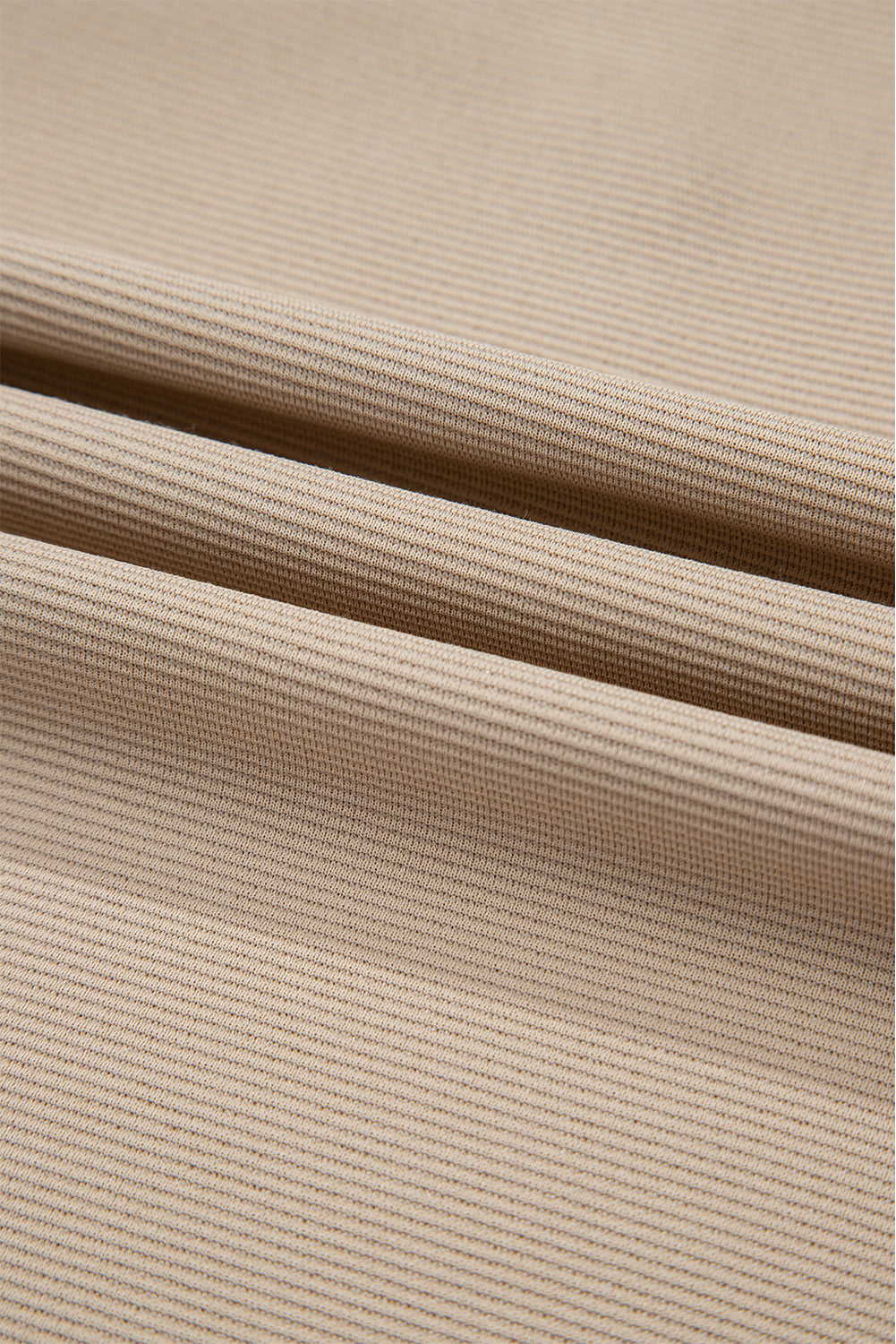 Pale Khaki Contrast V Neck Ruffled Textured Knit Top
