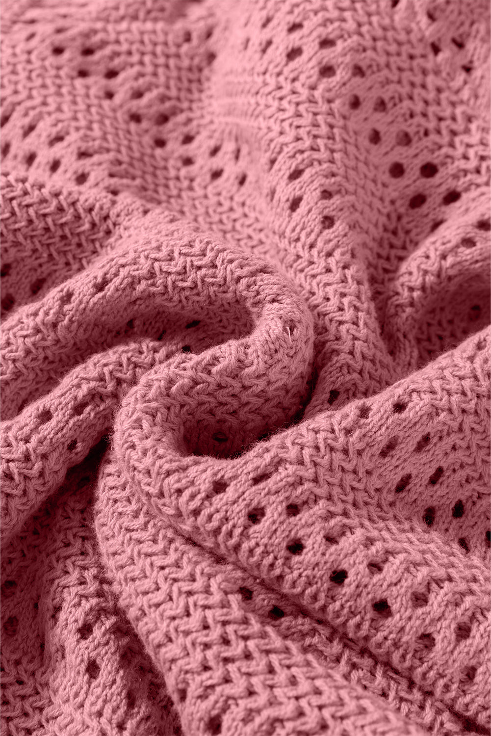 Upgrade your wardrobe with our Peach Blossom Pointelle Knit Raglan Sleeve Hooded Sweater. Made with a unique pointelle knit design and raglan sleeves, this sweater is perfect for any occasion. The hood adds a cozy touch while the peach blossom color adds a touch of elegance. Don't miss out on this trendy and versatile piece.