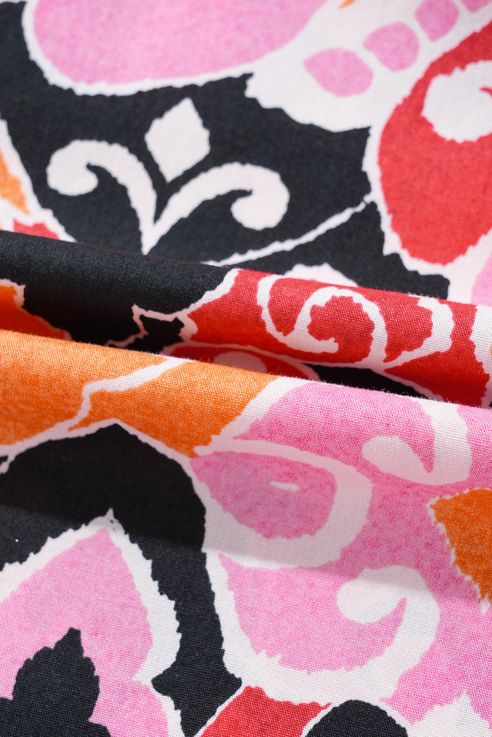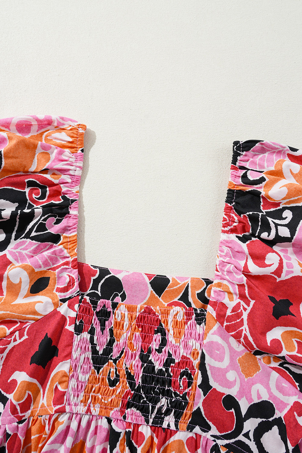 Pink Bohemian Square Neck Puff Sleeve Mini Dress