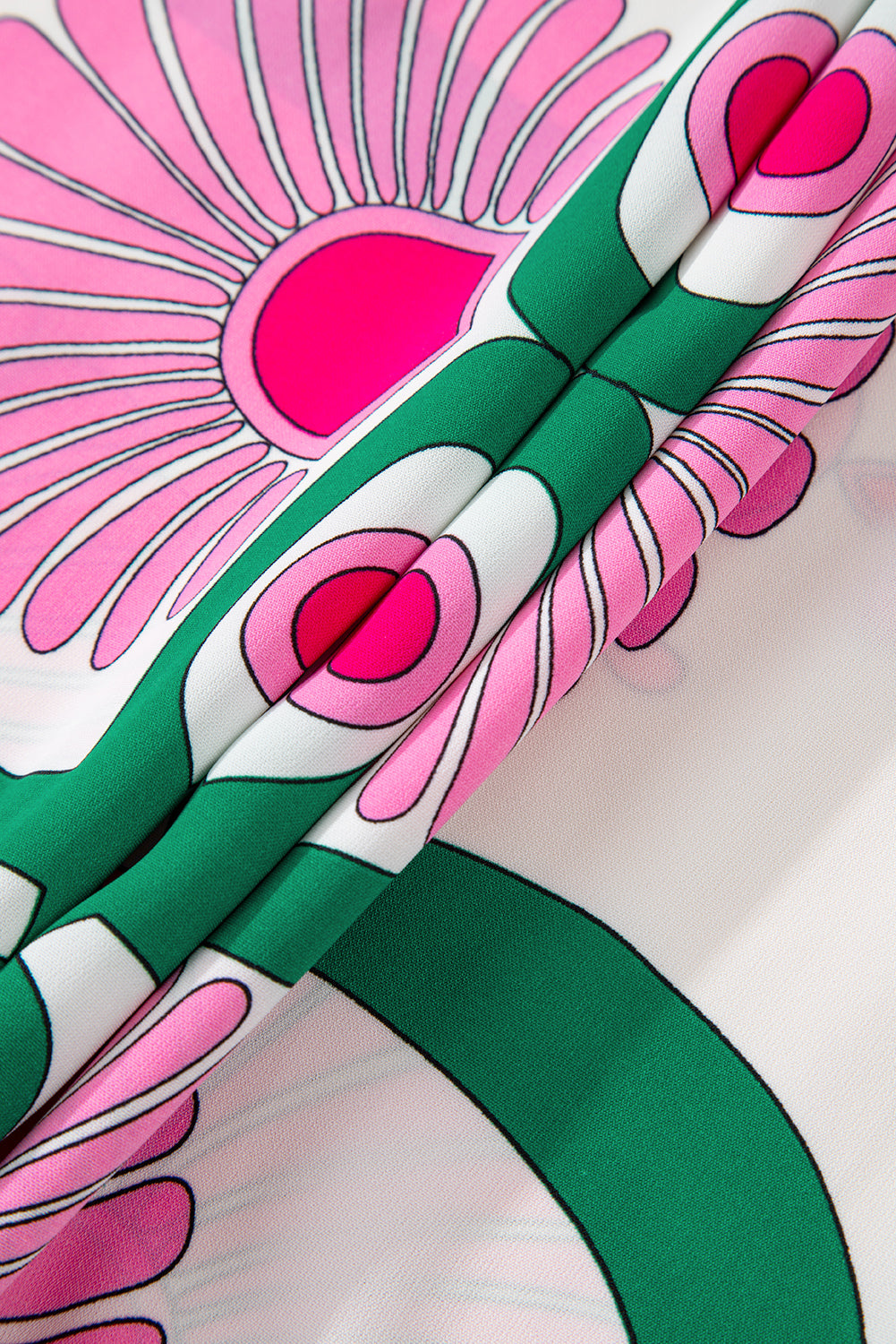 Pink Boho Floral Printed Long Sleeve Buttoned Loose Maxi Dress