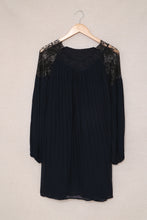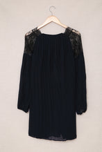 Pleated Lace Patchwork Lantern Sleeve Mini Dress