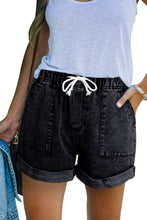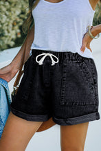 These high-waist denim shorts combine style and practicality with a comfortable drawstring waist and multiple pockets for convenience. Crafted from durable denim, they offer a flattering fit that enhances your silhouette while providing ease of movement. Ideal for casual wear, these shorts balance fashion with functionality for everyday comfort.