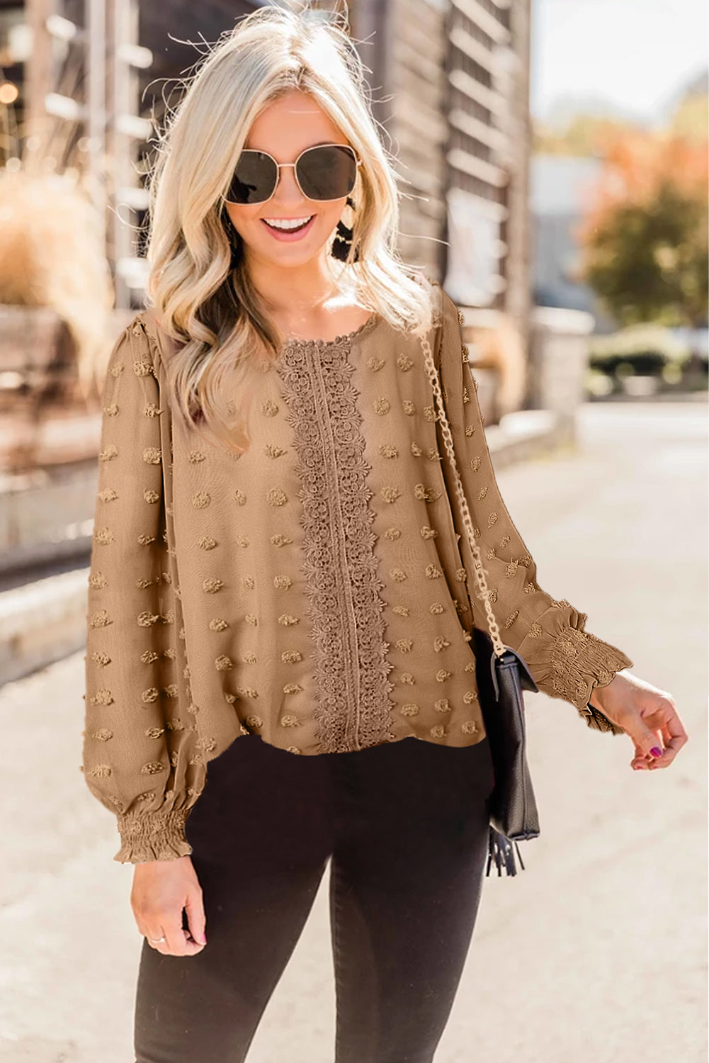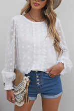 Polka Dot Lace Lantern Sleeve Blouse