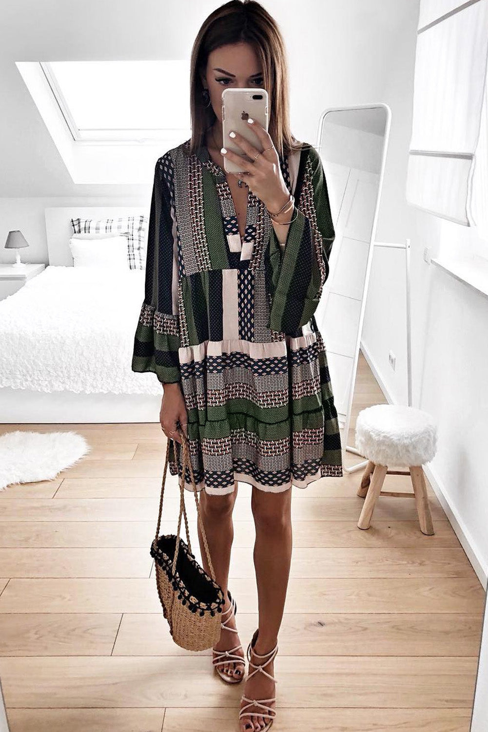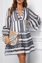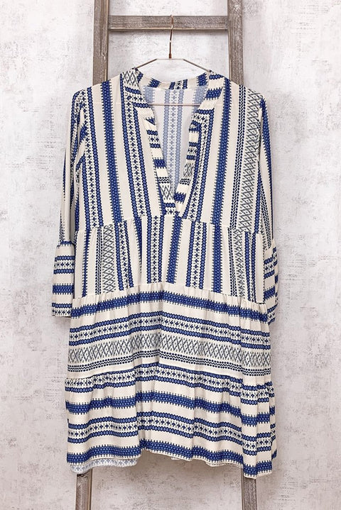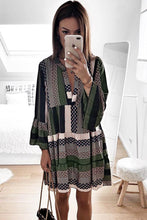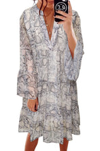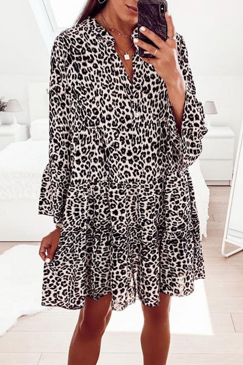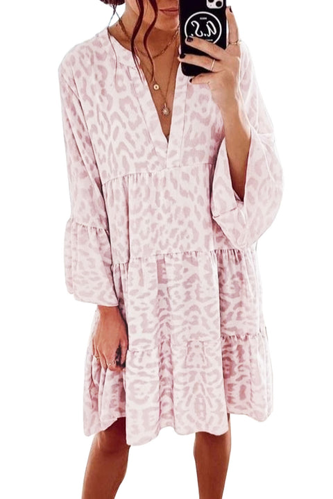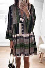 Print V neck Ruffle Swing Mini Dress