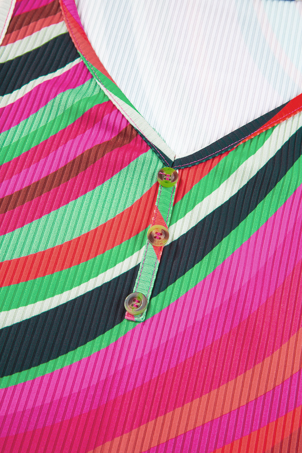 Purple Wavy Striped Buttoned V Neck Tank Top