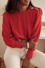 Red Button Tab Detail Long Sleeve Top
