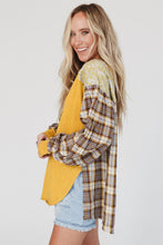 Red Floral Plaid Mixed Print Bishop Sleeve Patchwork Top