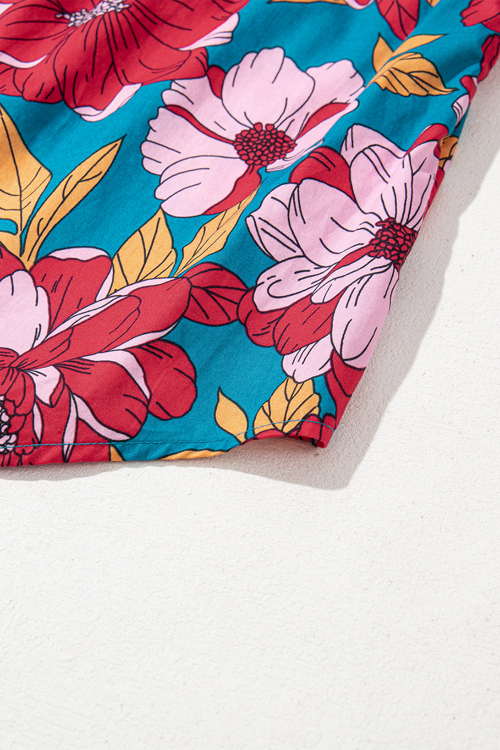 Red Floral Printed Balloon Sleeve Half Buttons Blouse