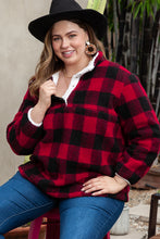 Red Plus Size Buffalo Plaid Sherpa Henley Sweatshirt