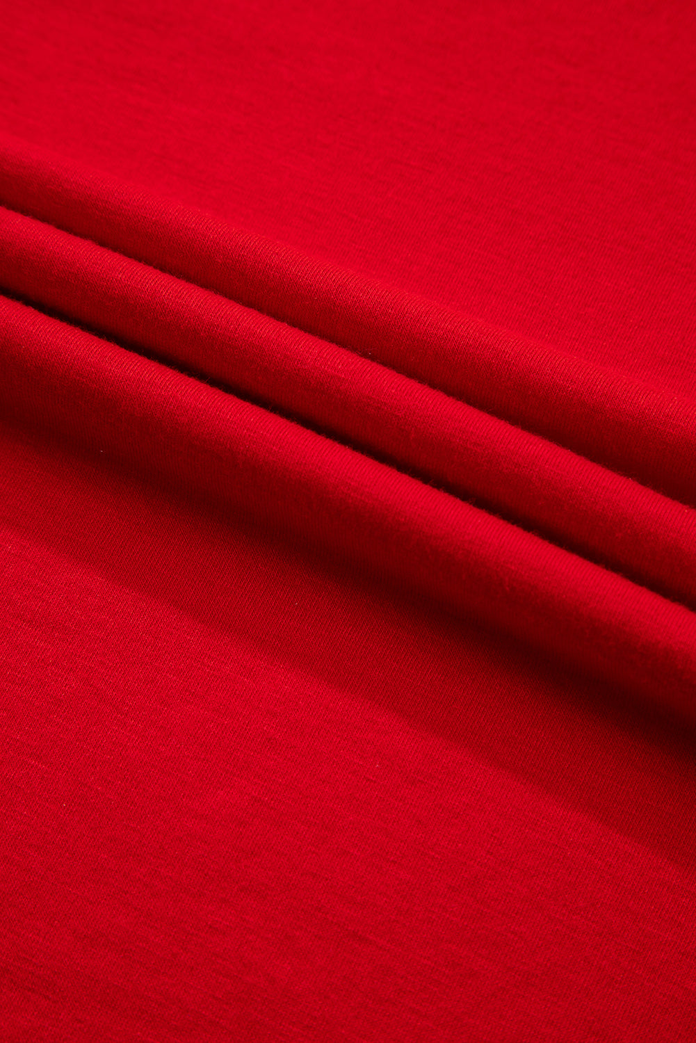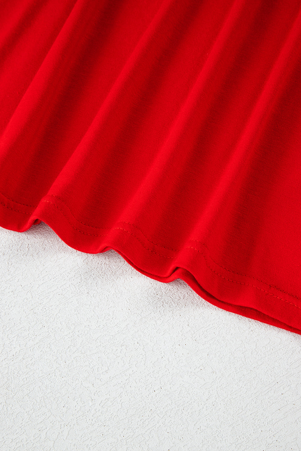 Elevate your holiday loungewear game with our Red Solid Top and Christmas Pants Two Piece Lounge Set. Made from soft, stretchy fabric, this set features a festive red solid top and matching Christmas patterned pants for ultimate comfort and style. Perfect for relaxing or for holiday gatherings.