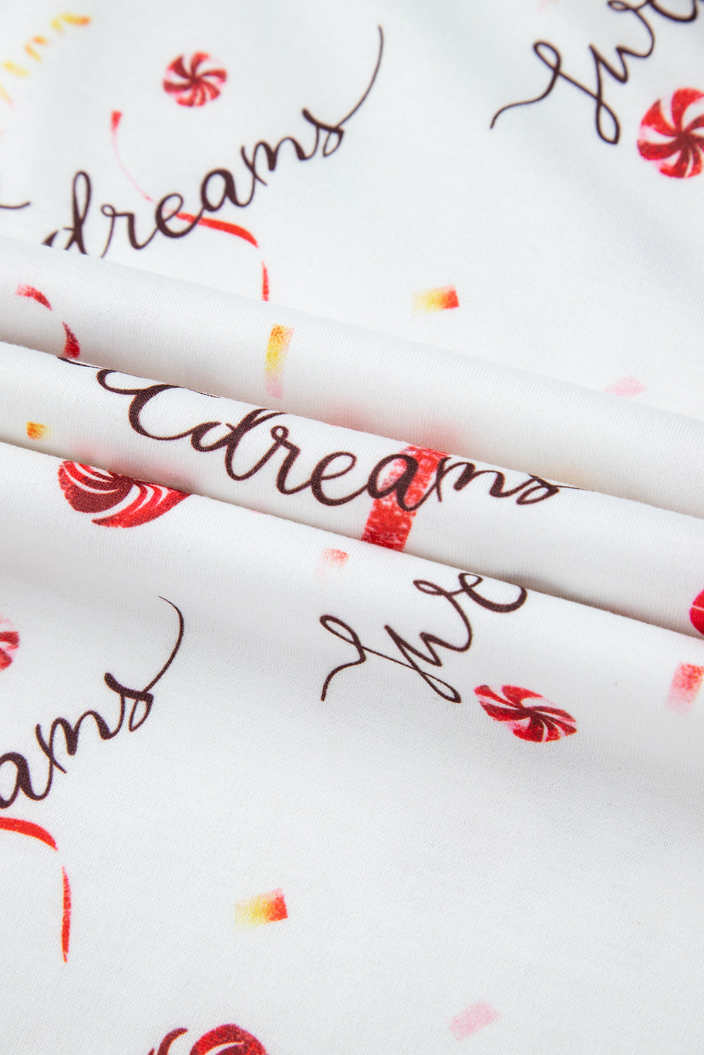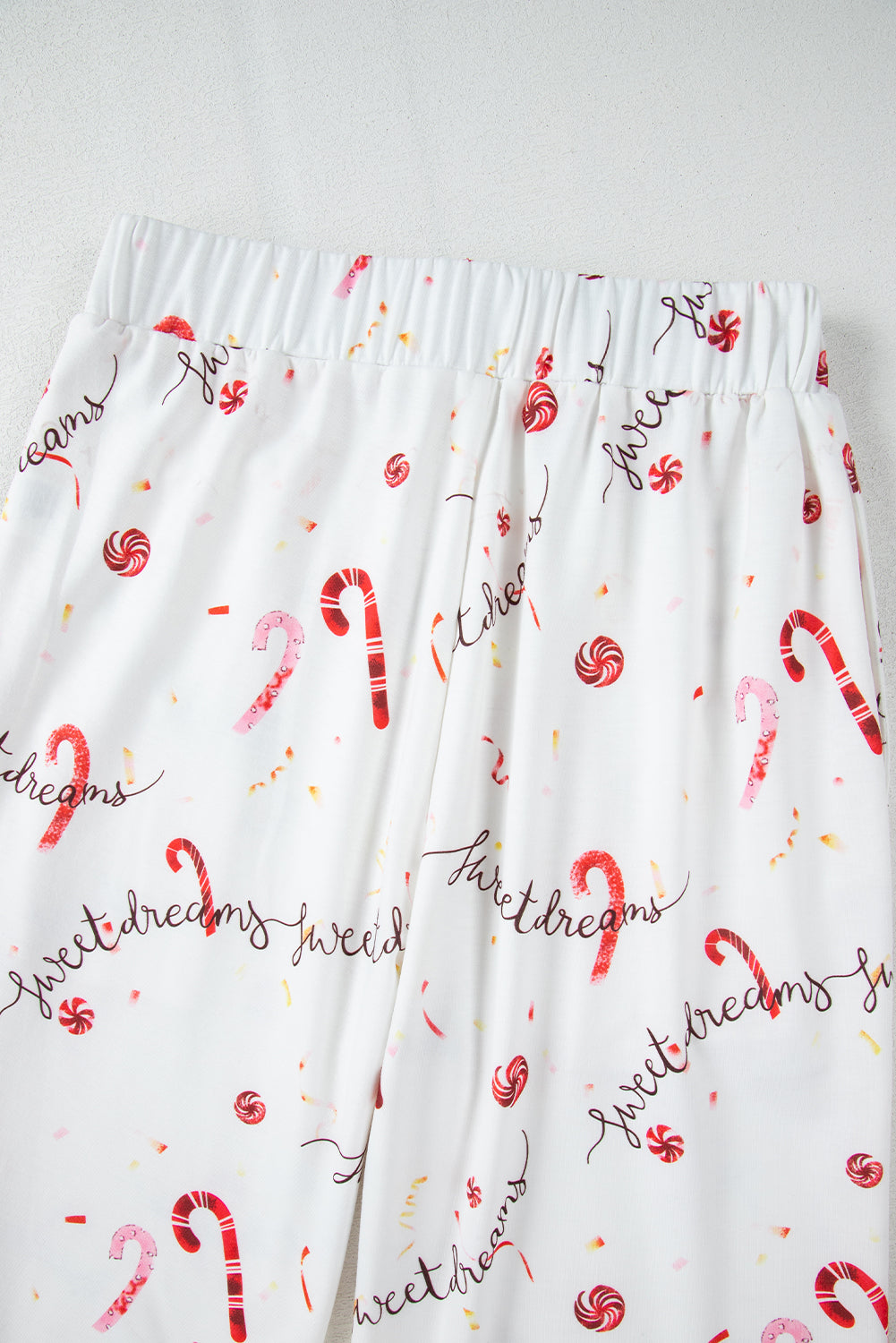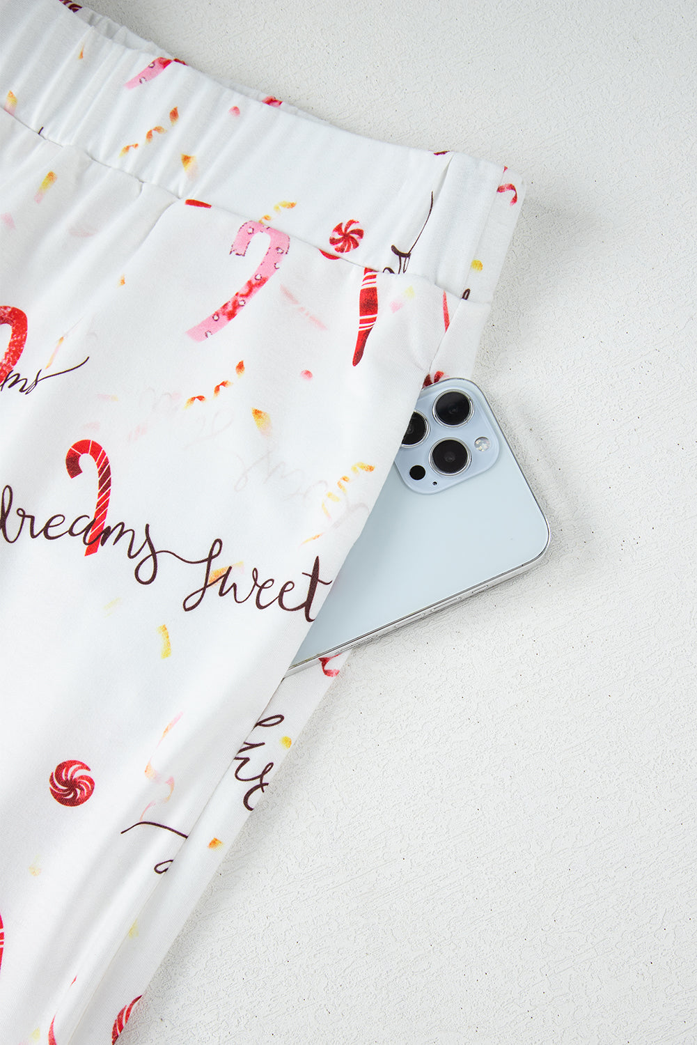 Red Solid Top and Christmas Pants Two Piece Lounge Set