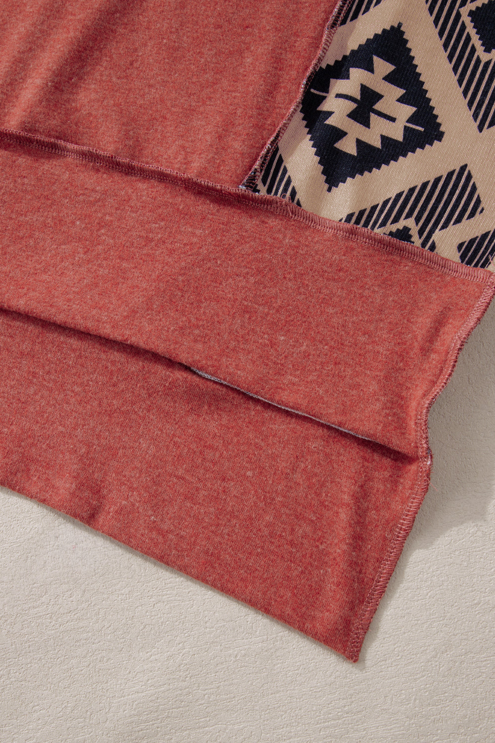 Redwood Burl Aztec Patchwork Drop Shoulder Plus Size High Low Sweatshirt