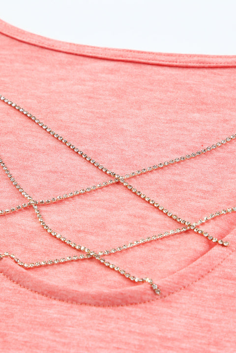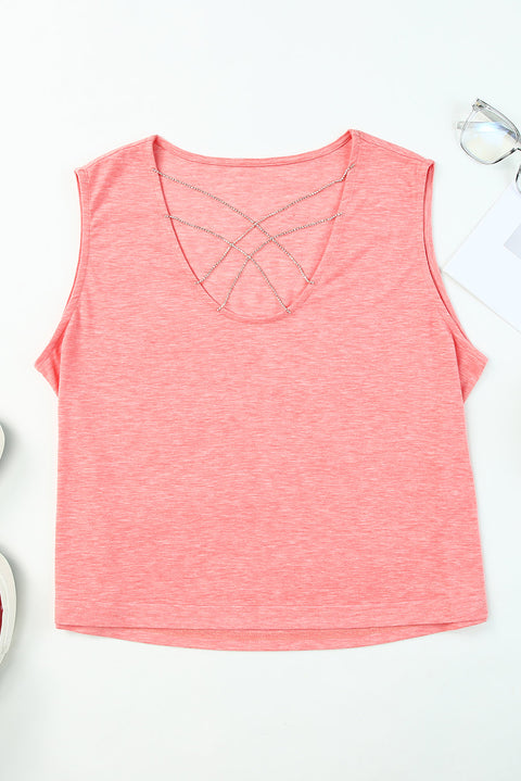 Rhinestone Strappy Decor Loose Tank Top