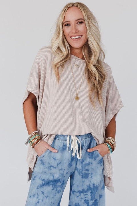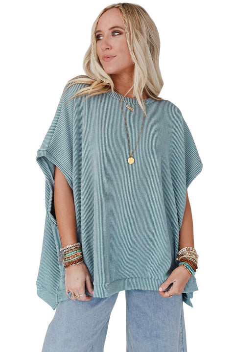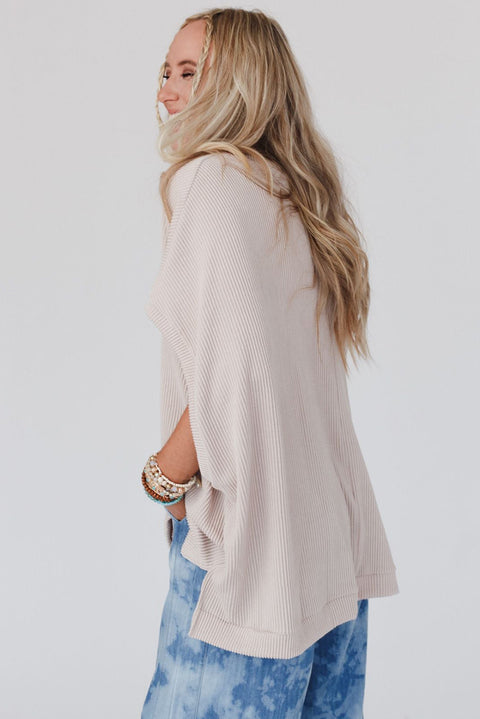 Ribbed Knit Batwing Sleeve Tunic Oversized T Shirt