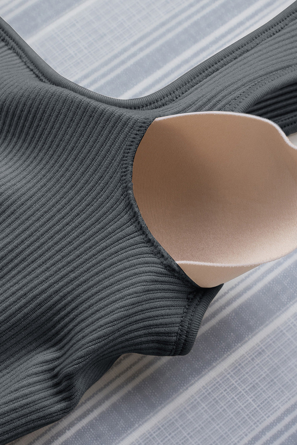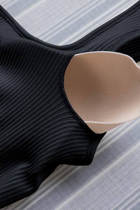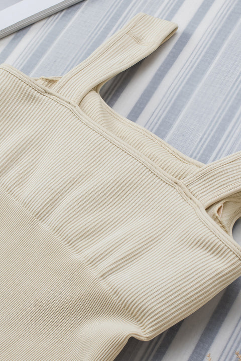 Ribbed Square Neck Padded Sports Romper