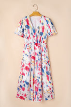 Rose Abstract Print Short Puff Sleeve Tiered Maxi Dress