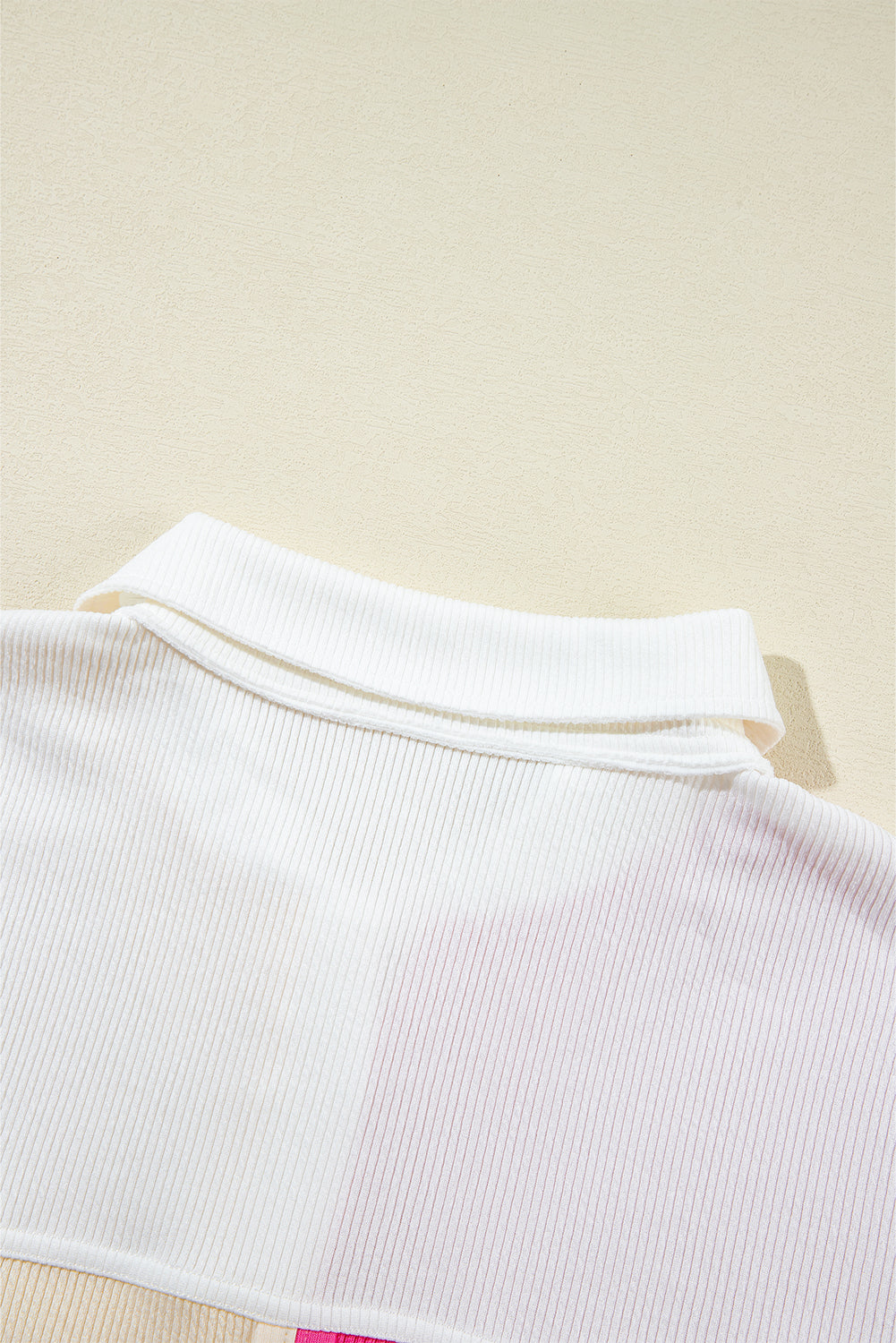 Rose Red Colorblock Ribbed Collared Oversized Sweatshirt