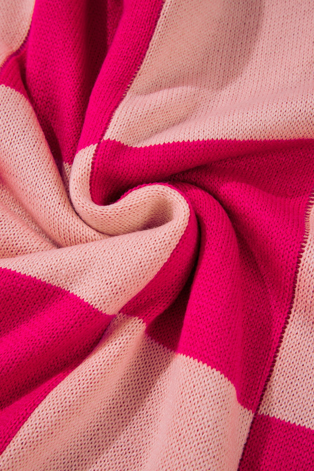 Rose Red Mixed Checkered Pattern Drop Shoulder Loose Sweater