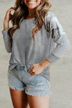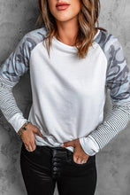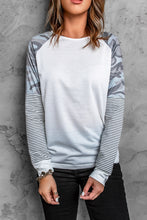 Round Neck Raglan Sleeve Camo Striped Patchwork Top