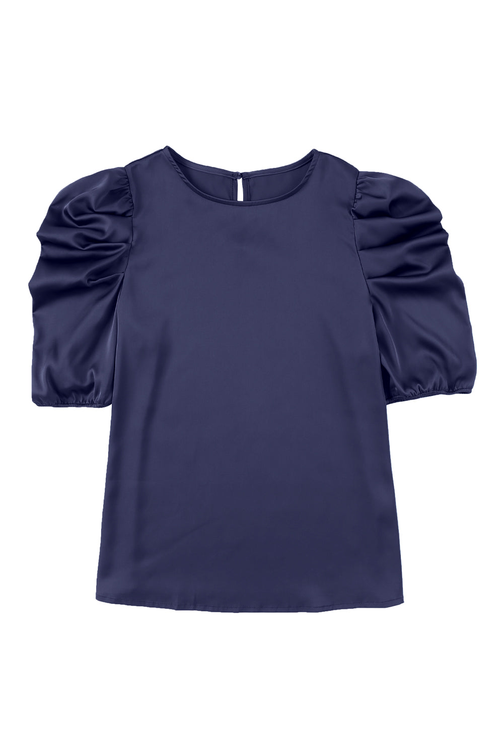 Ruched Puff Short Sleeve Satin Blouse