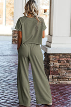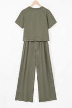 Seagrass Raw Hem Loose Tee and Wide Leg Pants Set
