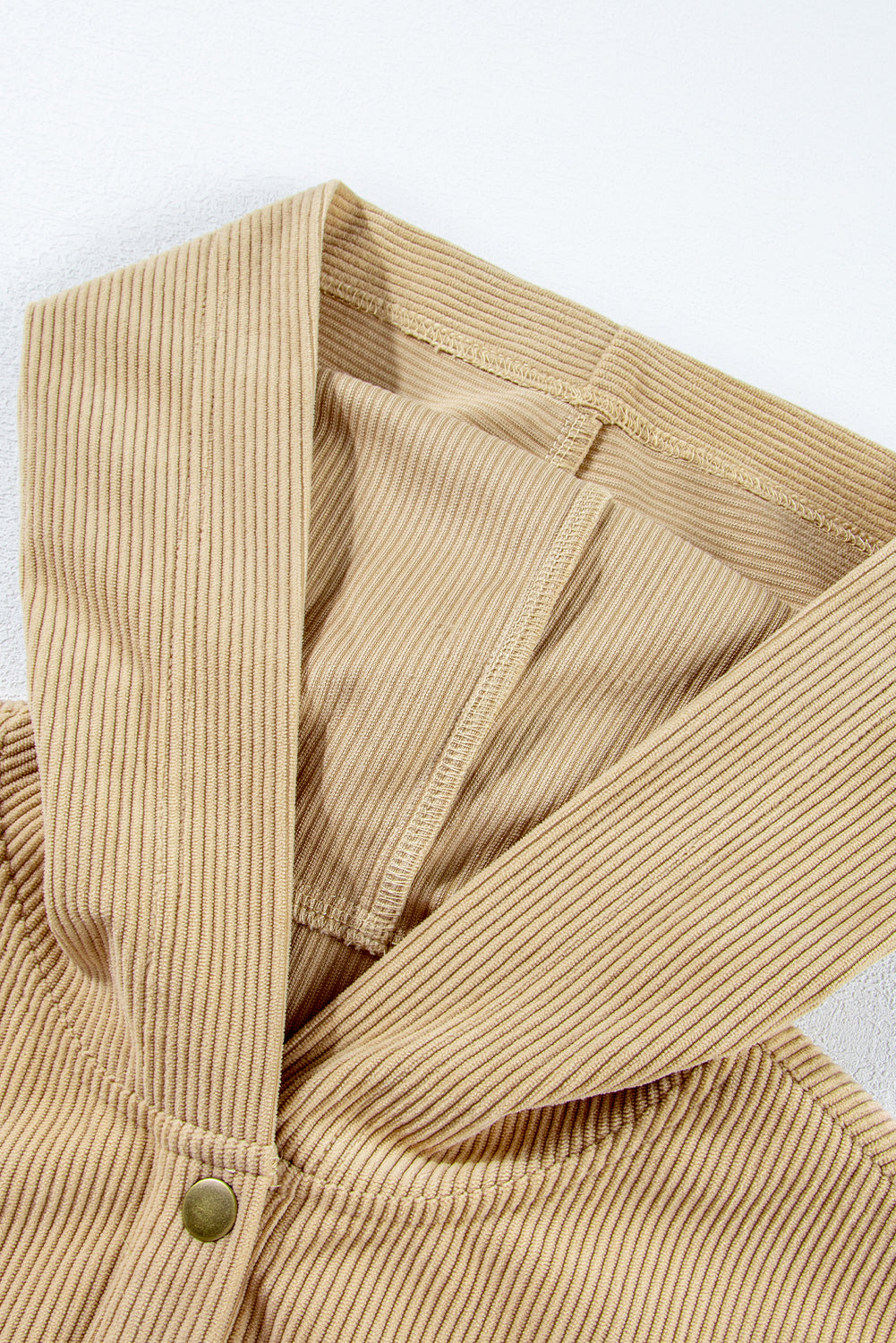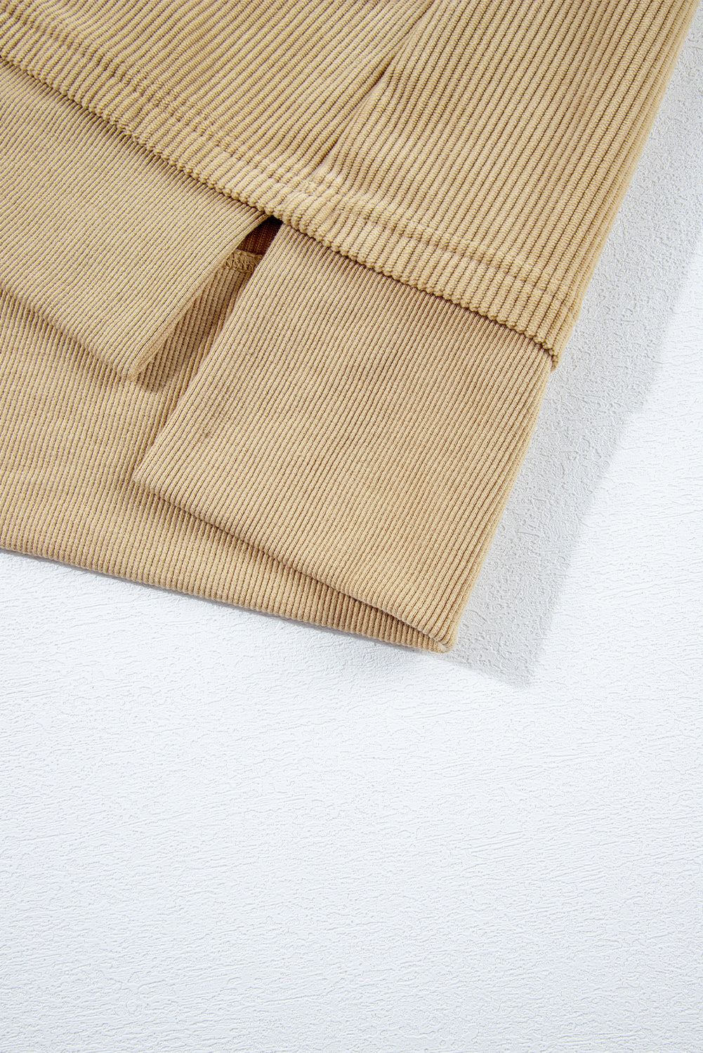 Simply Taupe Solid Ribbed Knit Buttoned Drop Shoulder Oversized Hoodie