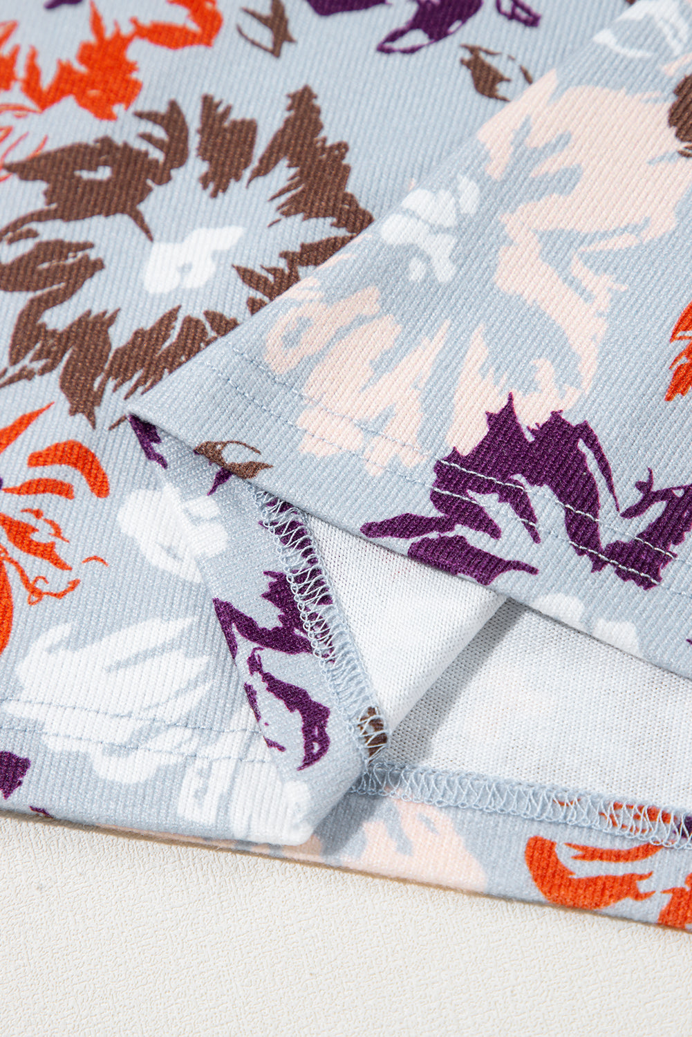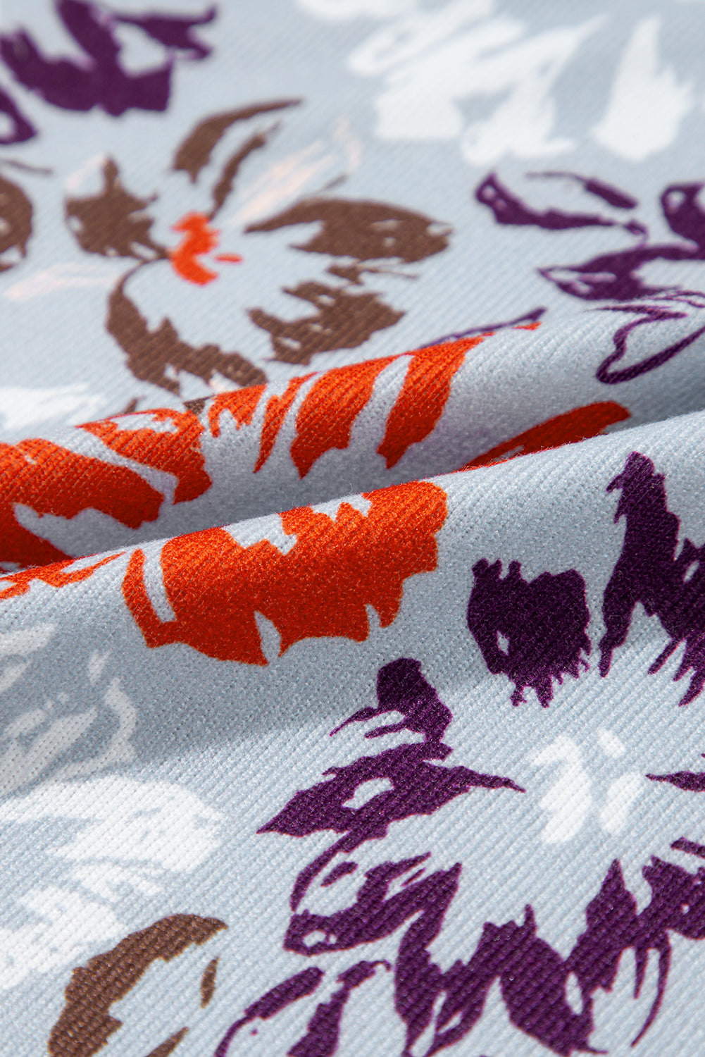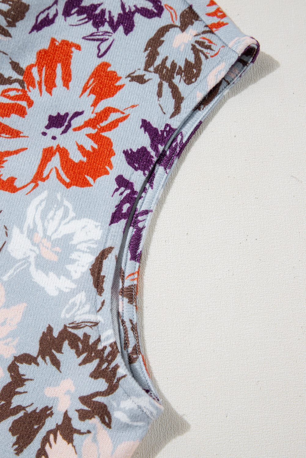 Sky Blue Floral Sleeveless Buttoned Pocketed Wide Leg Jumpsuit