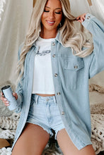 Sky Blue Waffle Knit Pocketed Button-Up Shacket