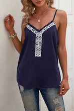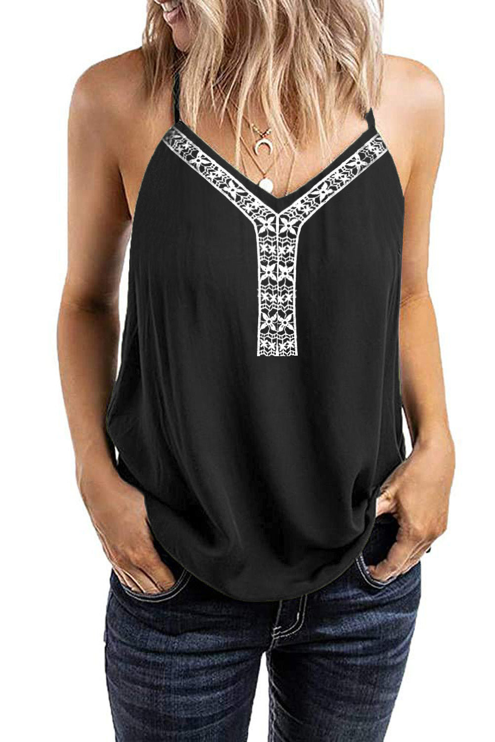 •Skinny adjustable straps, V-neck tank top with a lacy neckline