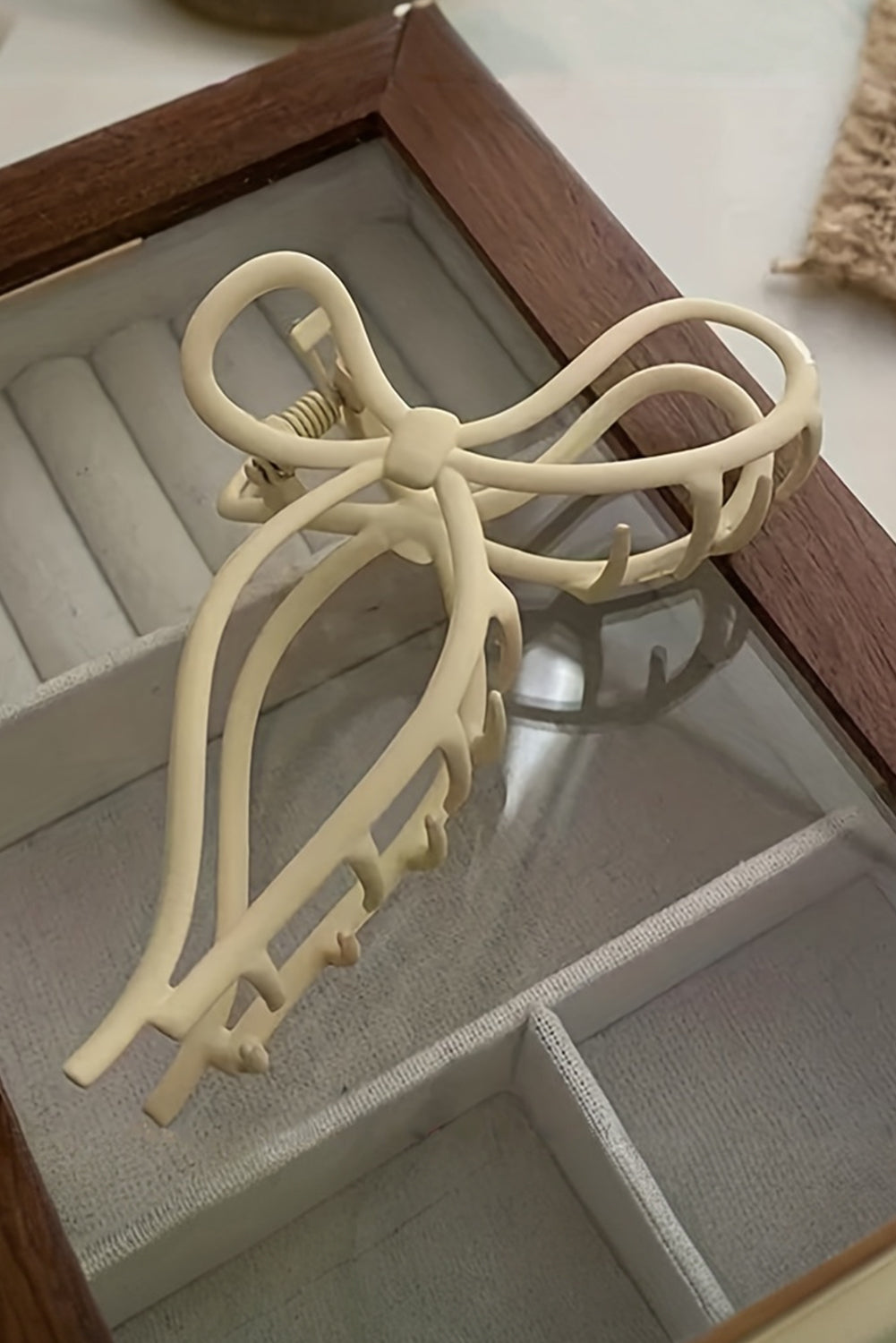 This Smoke Gray Long Tail Bowknot Hair Claw is the perfect accessory for any hairstyle. Its unique design adds a touch of elegance and sophistication while providing a secure hold. Made with high-quality materials, this hair claw is durable and long-lasting. Keep your hair in place with style and ease.