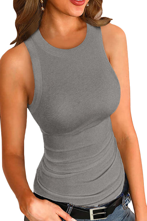 Solid Ribbed Knit Slim Fit Tank Top