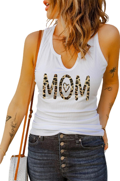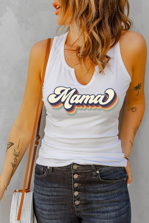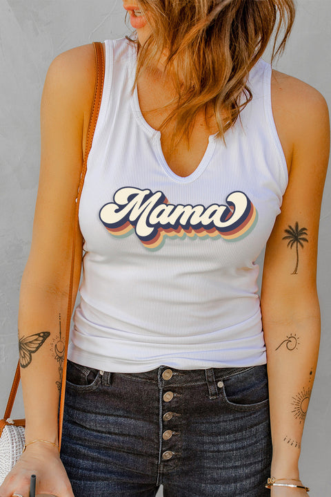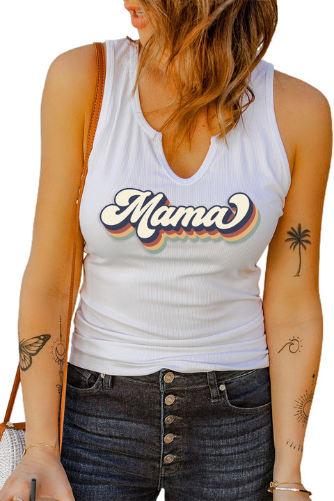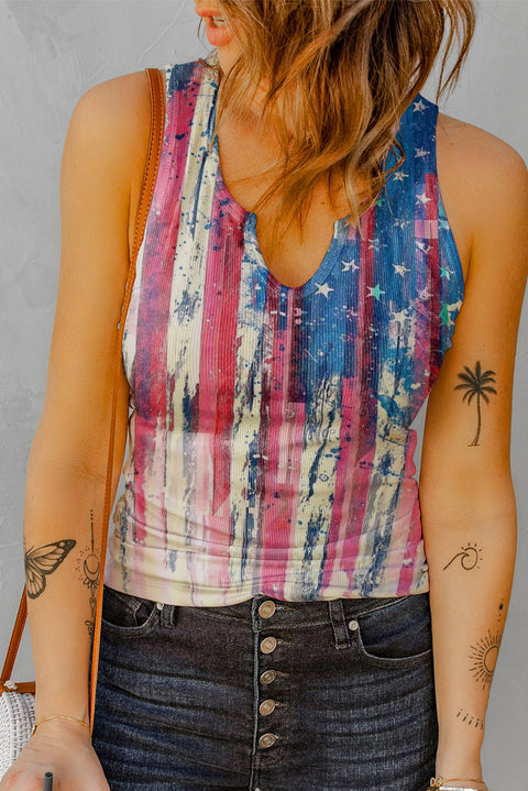 Split Neck Ribbed Knit Tank Top
