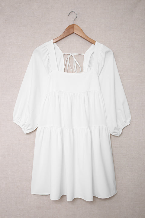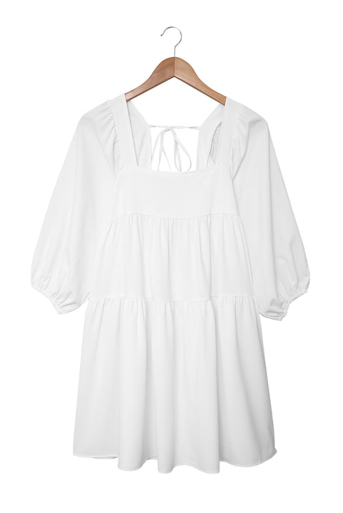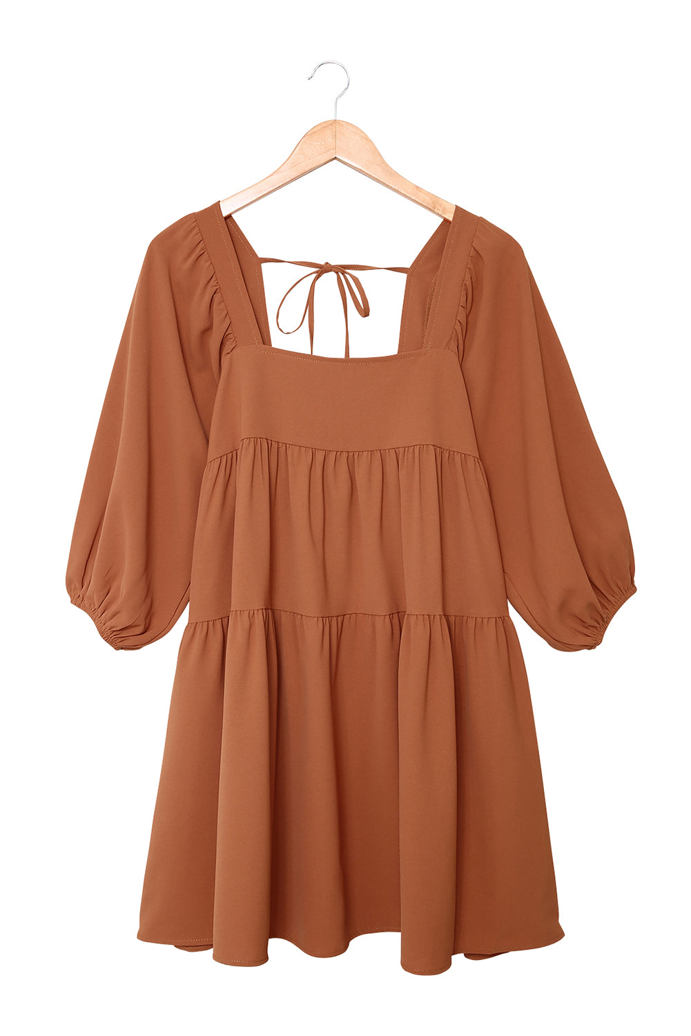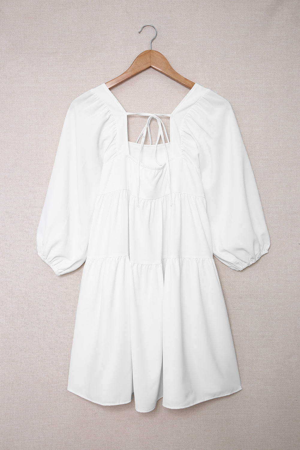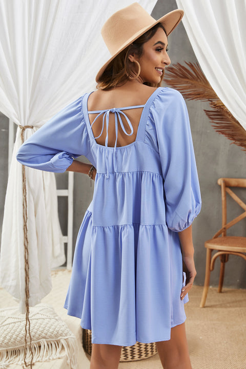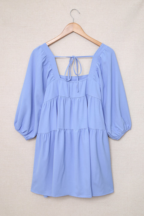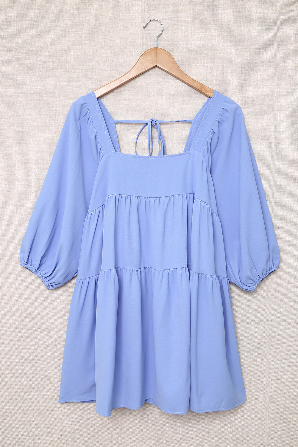 - Featured with a square neck, bubble sleeve, backless and mini length
