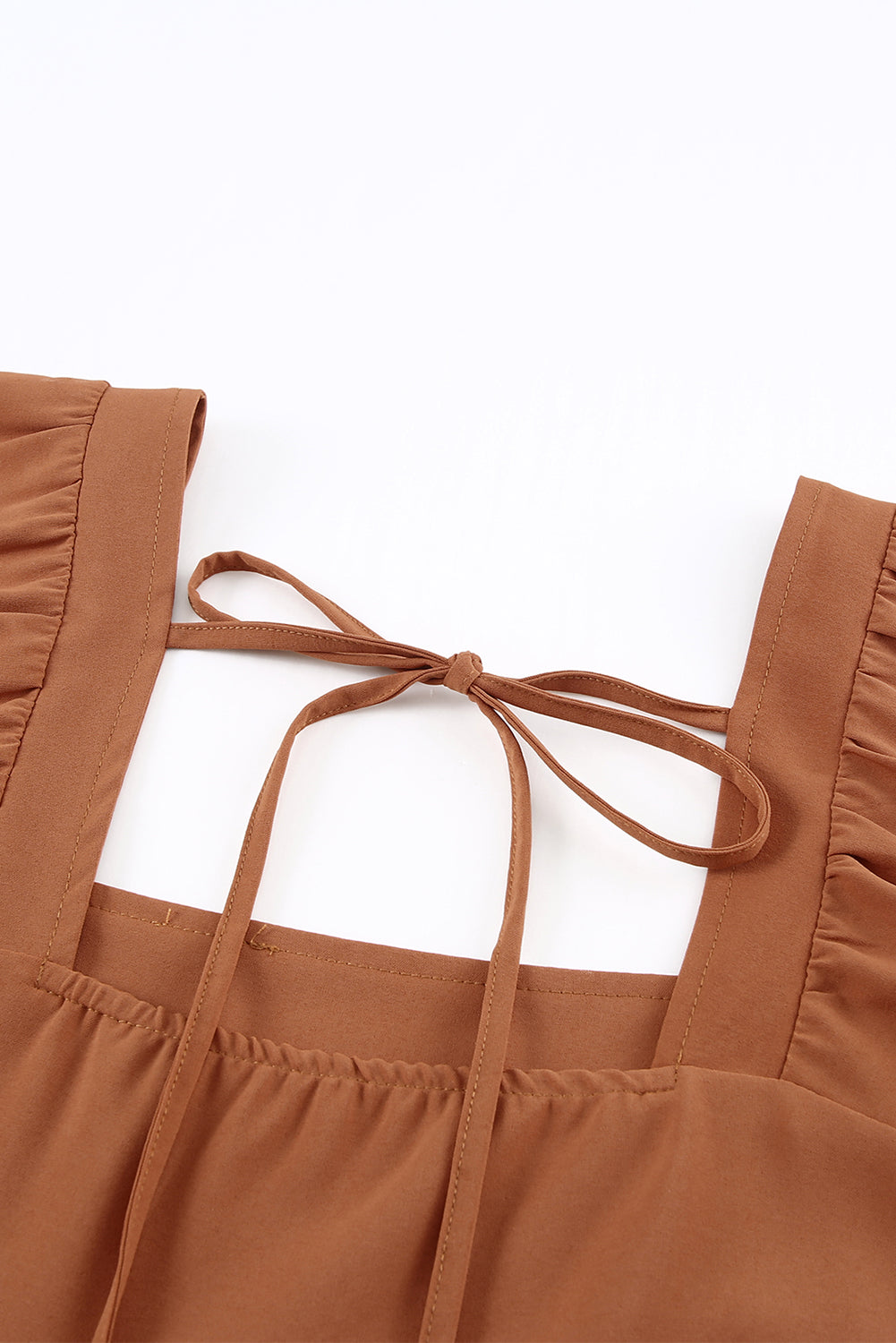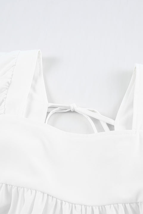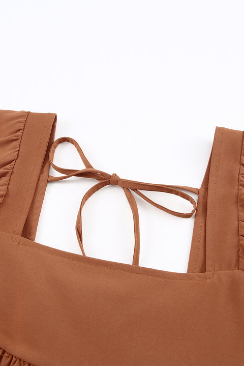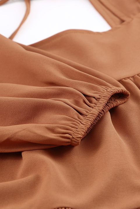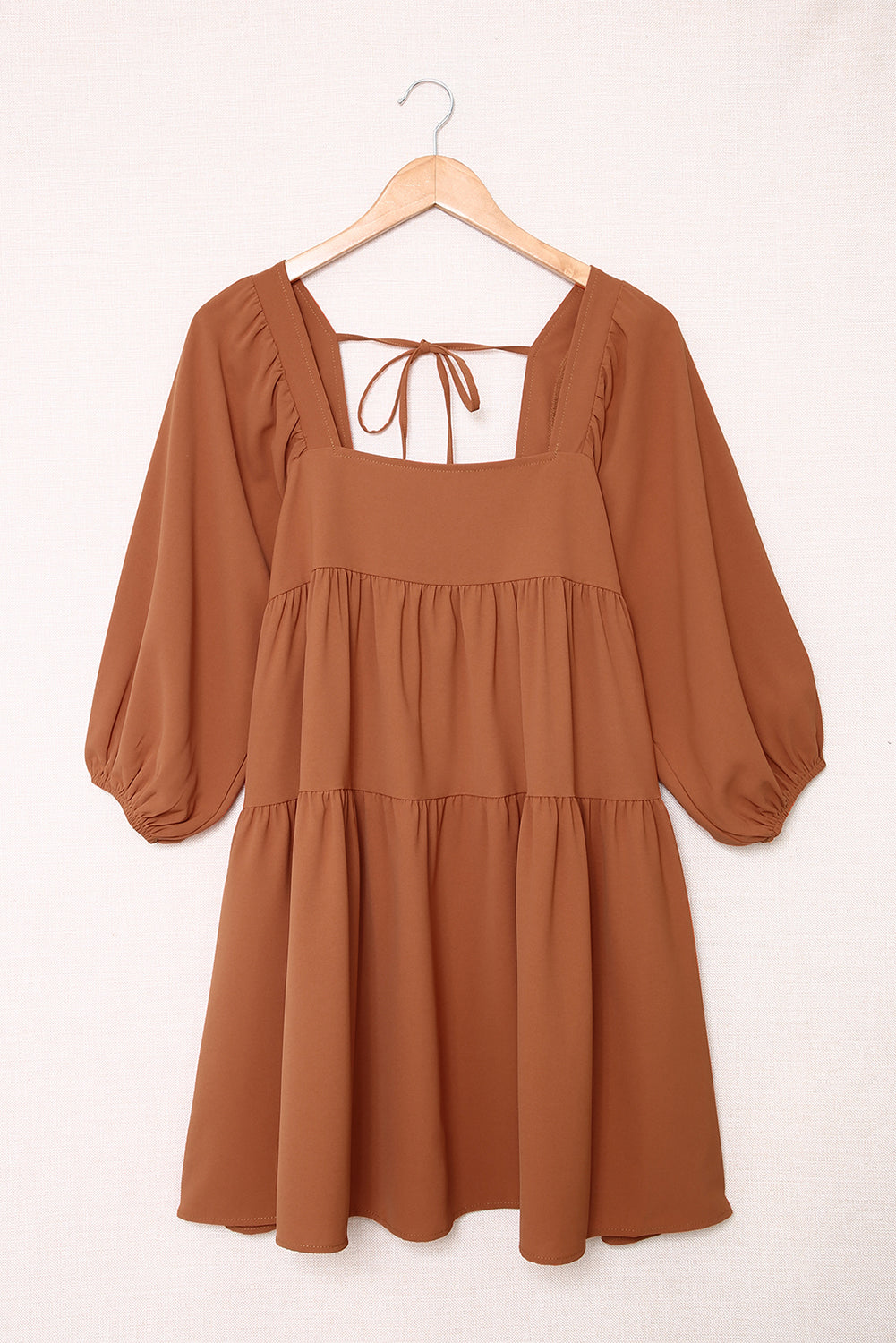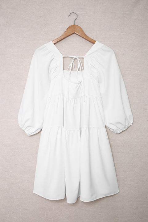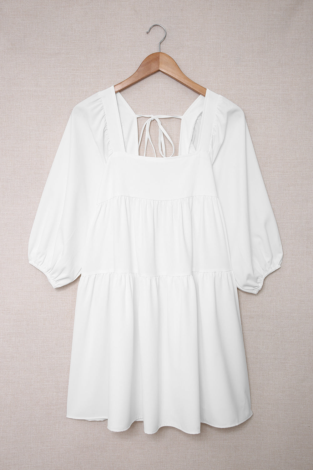 - Featured with a square neck, bubble sleeve, backless and mini length