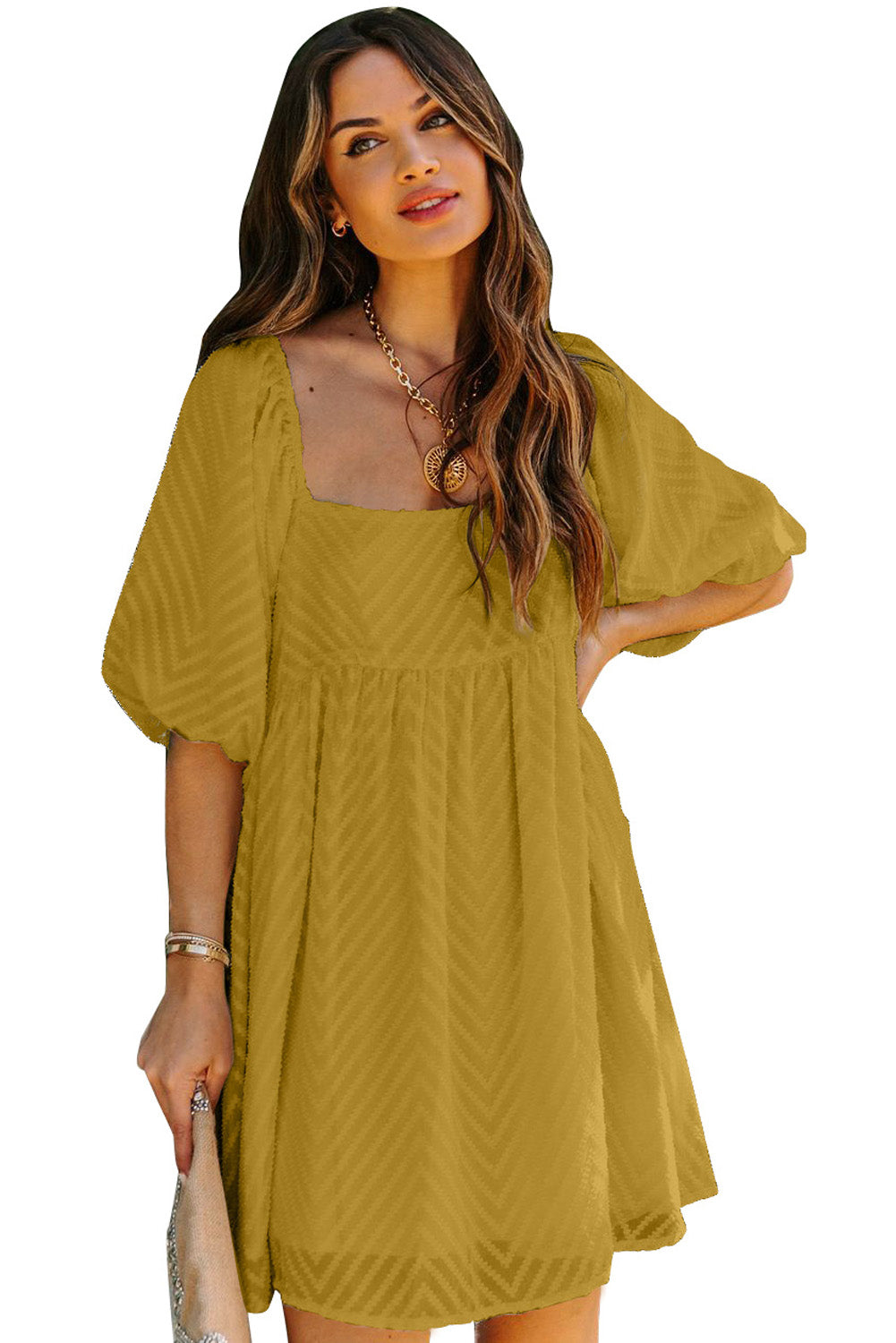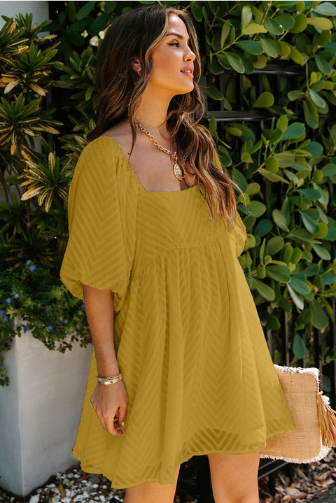 Square Neck Puff Sleeve Babydoll Mini Dress
