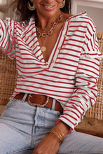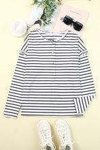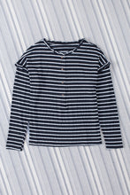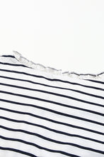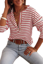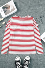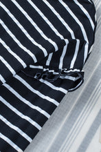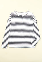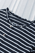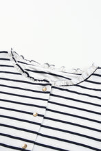 Striped Print Ruffled Buttoned Long Sleeve Top
